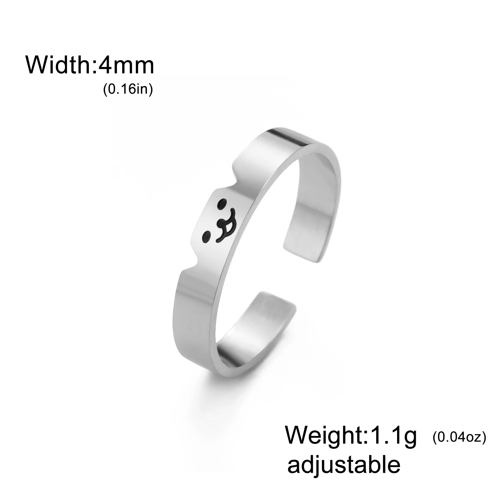 Celebrate your bond with this pair of adjustable stainless steel couple rings, available in classic steel or 18k gold-plated finishes. Each ring features a playful, minimalist animal motif—either a cute cat or dog—engraved with black outlines for a charming look. The open-ended design allows for easy resizing, ensuring a comfortable fit for daily wear. Perfect for commemorating special moments like weddings, anniversaries, or birthdays, these trendy rings offer durability, resistance to rust, allergens, acids, and alkalis, and a fade-proof finish. Their versatile style makes them ideal for expressing love and affection all year round, making each day a celebration of your unique connection.