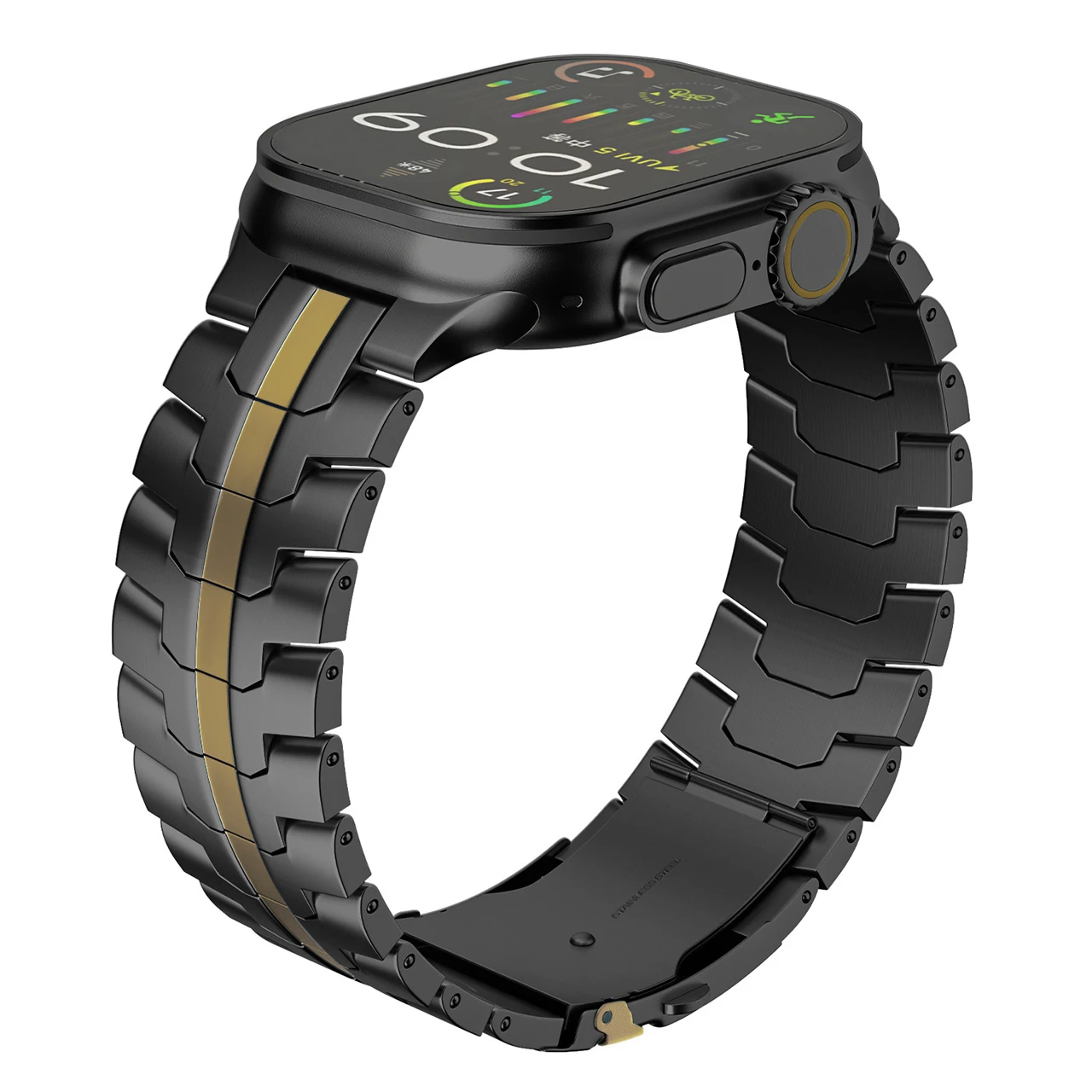 Experience the perfect combination of durability and elegance with this stainless steel metal strap designed specifically for your Apple Watch. Crafted from high-quality stainless steel, it offers a sleek, modern look that easily complements both sporty and sophisticated styles. The vivid black finish with a striking red stripe down the center creates a bold contrast, adding an eye-catching detail to your daily wear. Its wide, smooth polished links ensure comfort and durability, making it suitable for unisex use across various Apple Watch models, including Ultra 3, 2, 1, Series 11, 10, 9, SE, and case sizes ranging from 42mm to 49mm. The deployment clasp provides a secure fit and streamlined appearance, perfect for enhancing your active lifestyle or elevating your formal outfits.