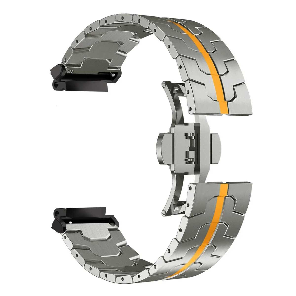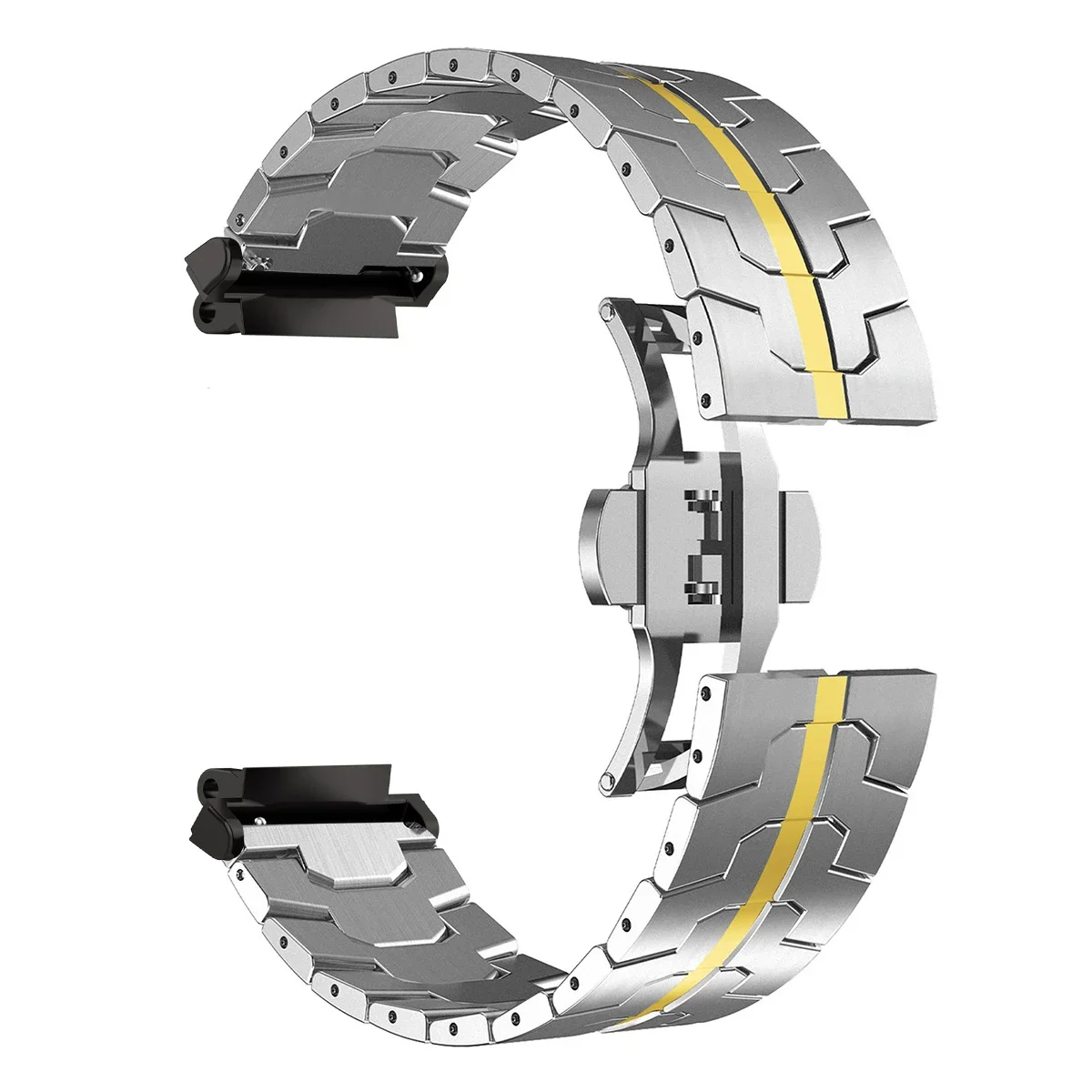 Experience the perfect blend of luxury and durability with this stainless steel watchband designed specifically for the Amazfit T-Rex 3 Smart Watch. Crafted from high-quality stainless steel, this strap offers a sleek, sophisticated look that elevates your wearable style. Its sturdy construction ensures long-lasting wear, while its comfortable fit makes it suitable for everyday use. Whether you're heading to work or enjoying leisure activities, this watchband complements any outfit. Easy to install, it seamlessly transforms your smartwatch into a stylish accessory. Invest in this premium strap today and redefine your smartwatch experience with timeless elegance and unmatched quality.
