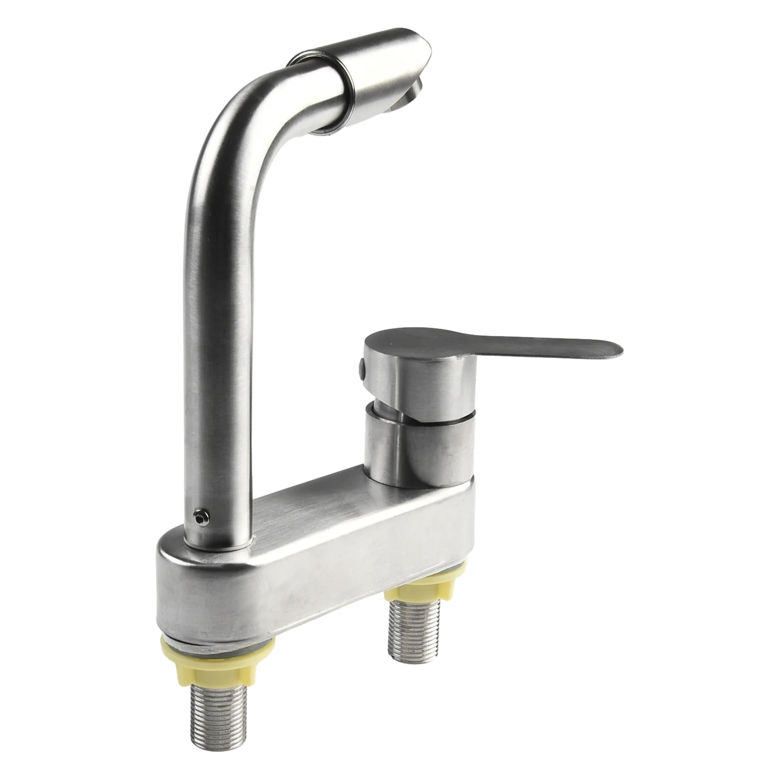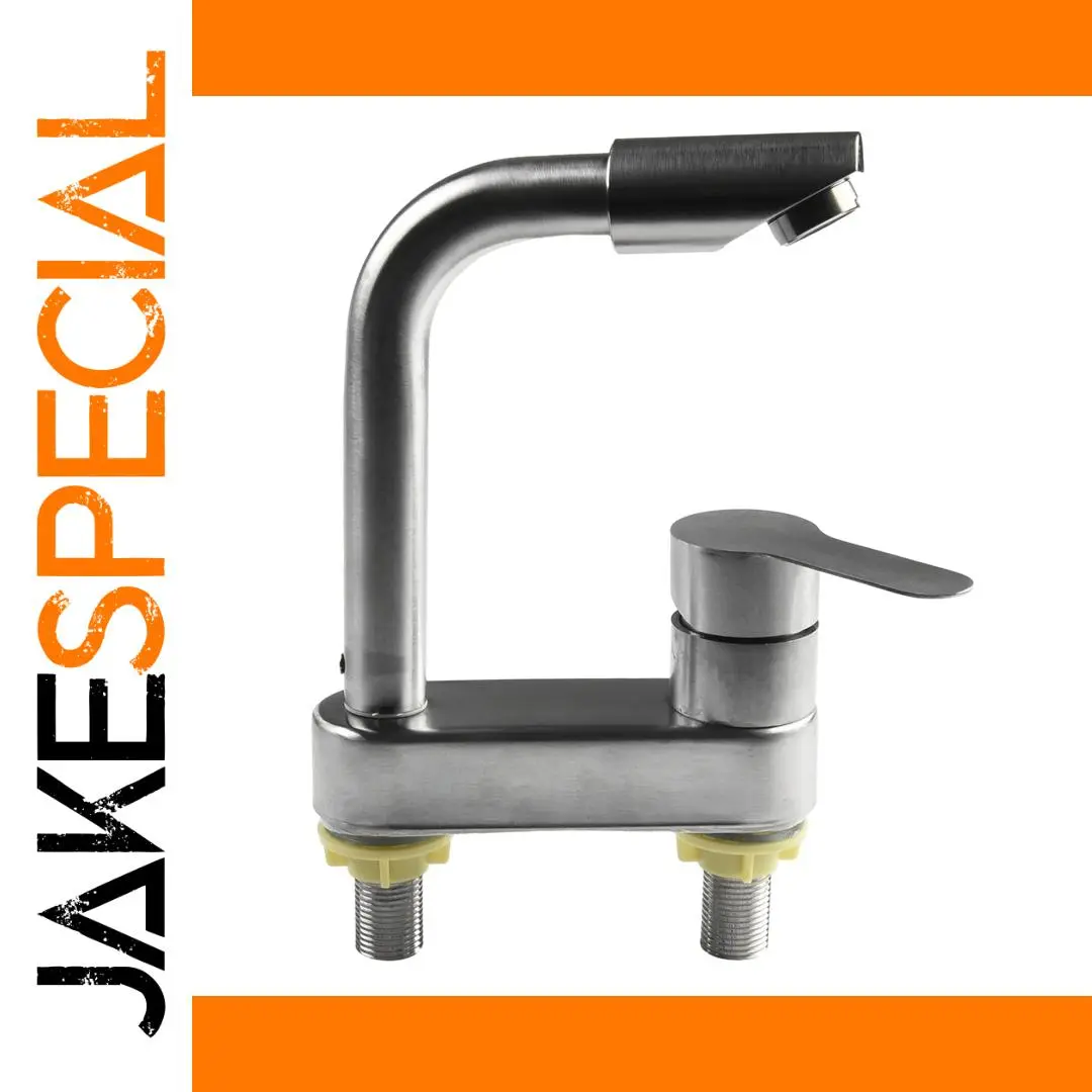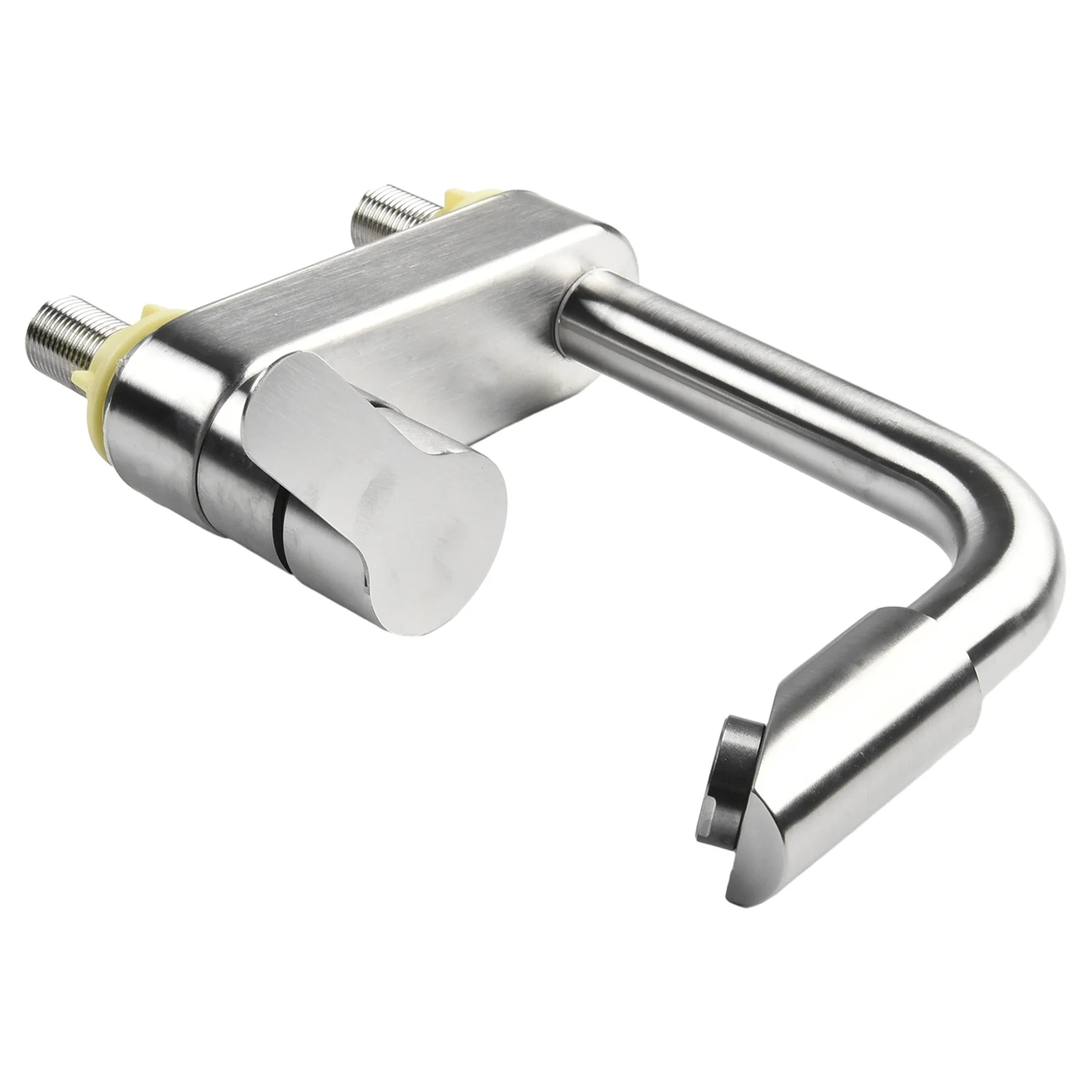 Upgrade your bathroom with this sleek stainless steel basin faucet, featuring a contemporary design that combines durability and elegance. Its tall, curved spout with a wire-drawing matte finish offers a sophisticated look, while the rectangular body with rounded edges enhances the minimalist aesthetic. Equipped with a single elongated lever handle for effortless control, this deck-mounted faucet requires two holes for installation and incorporates a ceramic valve core for smooth operation. Made entirely of stainless steel, it provides excellent corrosion resistance, easy cleaning, and reliable hot and cold water mixing—perfect for enhancing any modern sink setup with style and functionality.