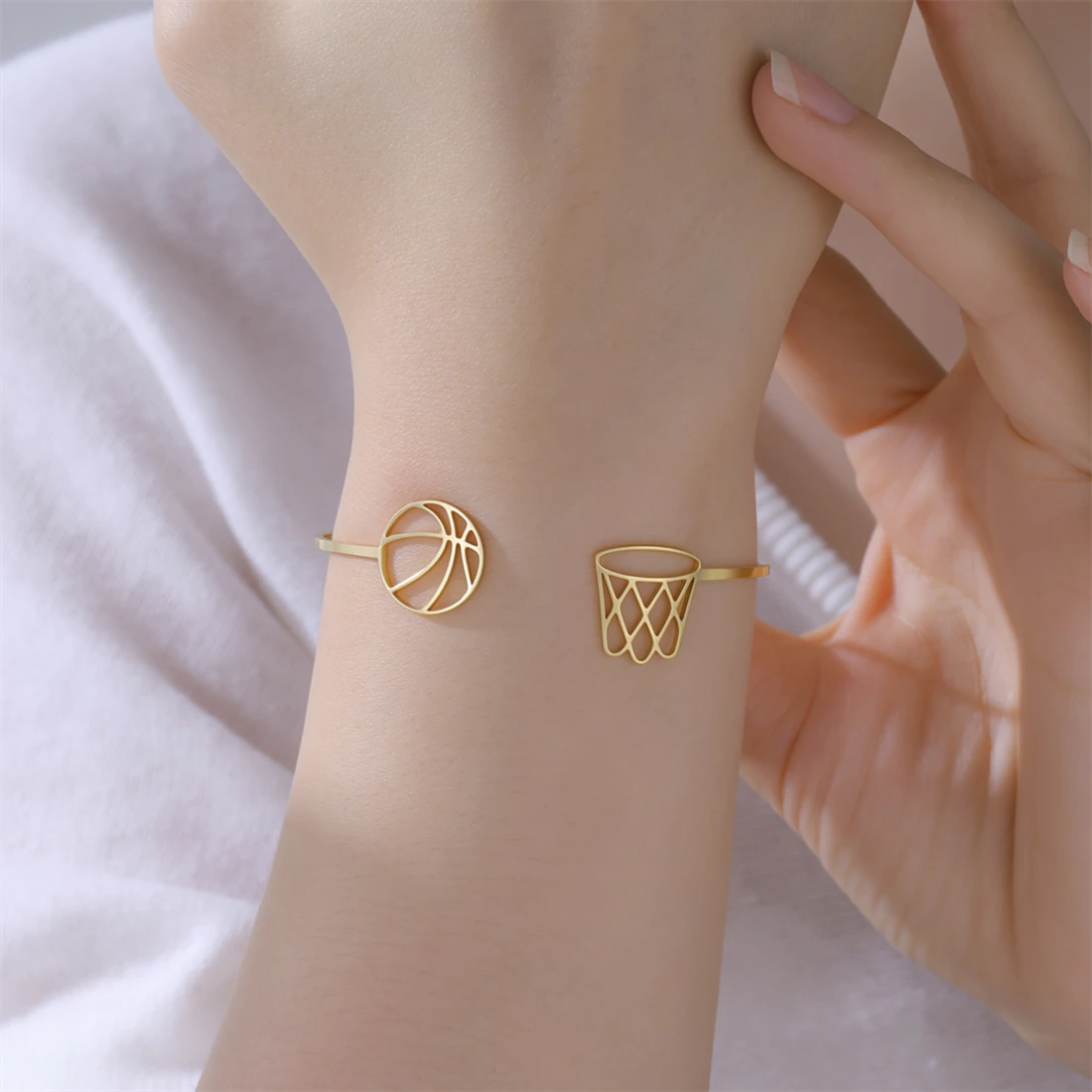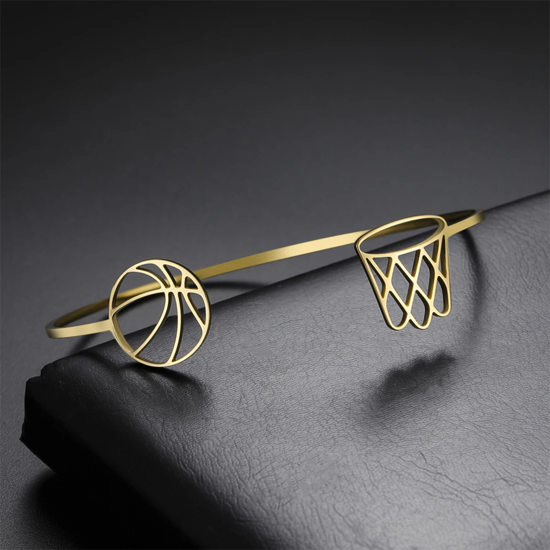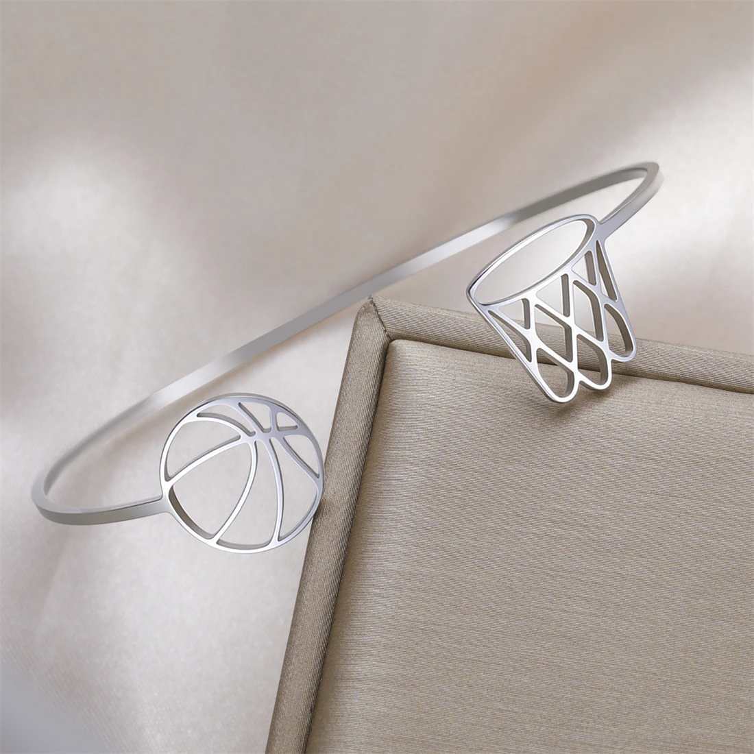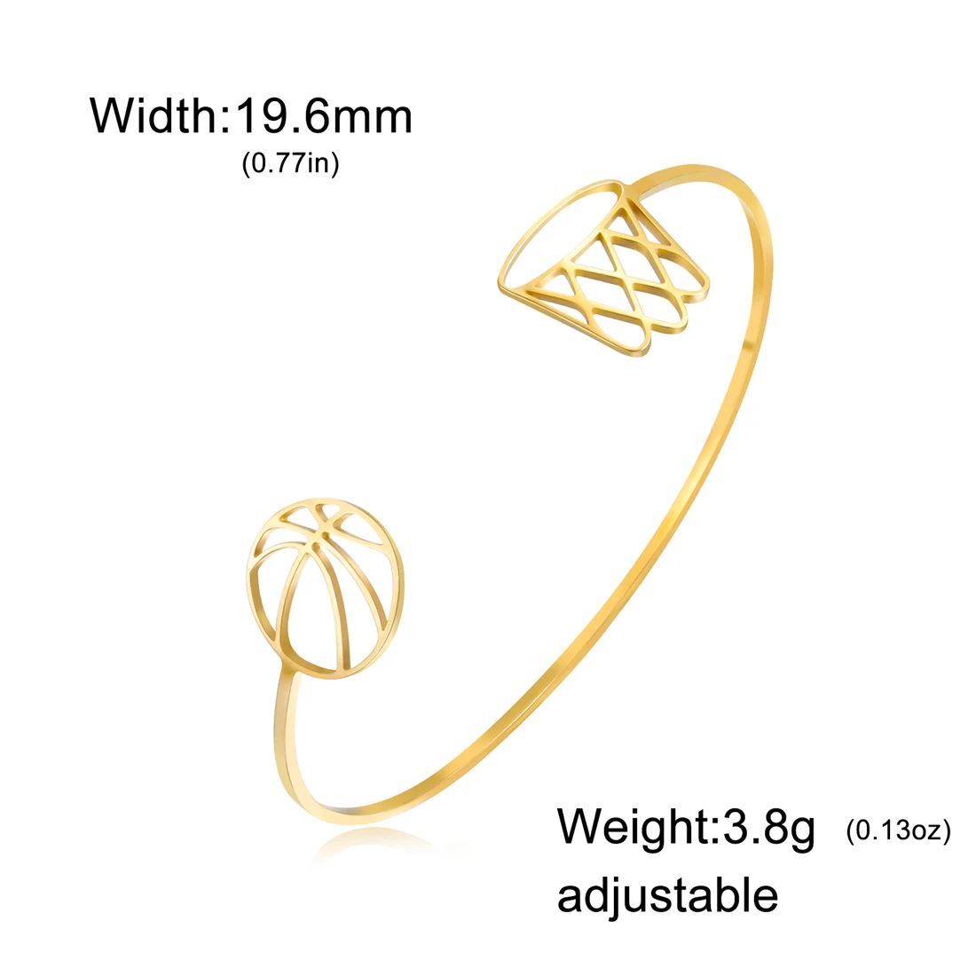 Experience the perfect blend of sportiness and elegance with this unisex stainless steel bracelet, featuring a minimalist basketball and basket frame design. With a sleek width of 19.6mm, this accessory highlights a lightweight, refined aesthetic that is suitable for casual, fashionable wear. Whether you're celebrating a special occasion or adding a sporty touch to your daily outfit, this bracelet’s adjustable feature ensures a comfortable fit for both men and women. Crafted from durable stainless steel, it offers long-lasting shine and resistance to tarnish. Its versatile design and romantic detailing make it a thoughtful gift for loved ones or a stylish addition to your own collection, capturing a sense of active elegance and modern style.