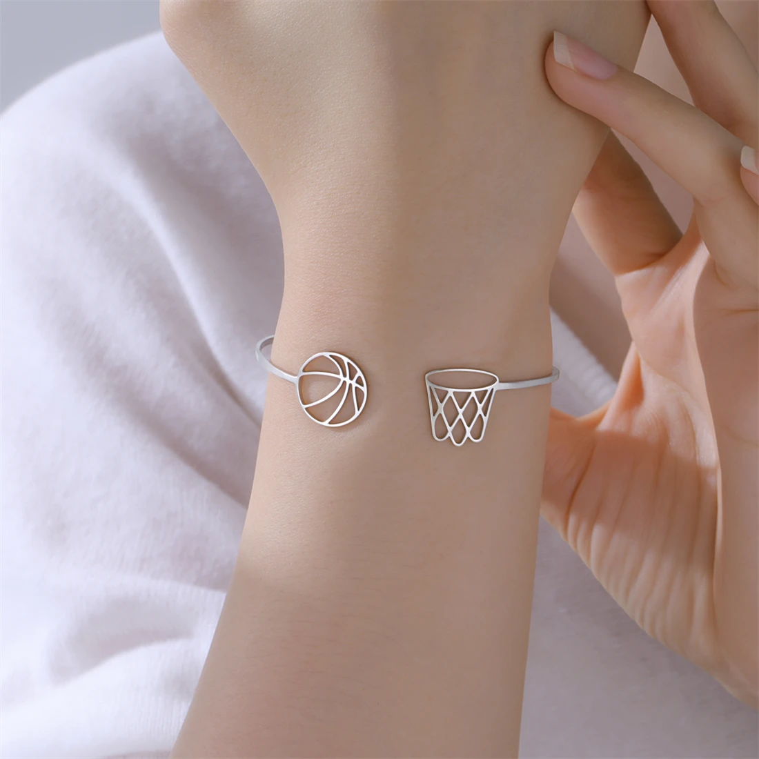 - Designed with a delicate basketball and basket frame motif, the bracelet showcases fine, skeleton-like metal patterns that emphasize an airy, fashionable look.
