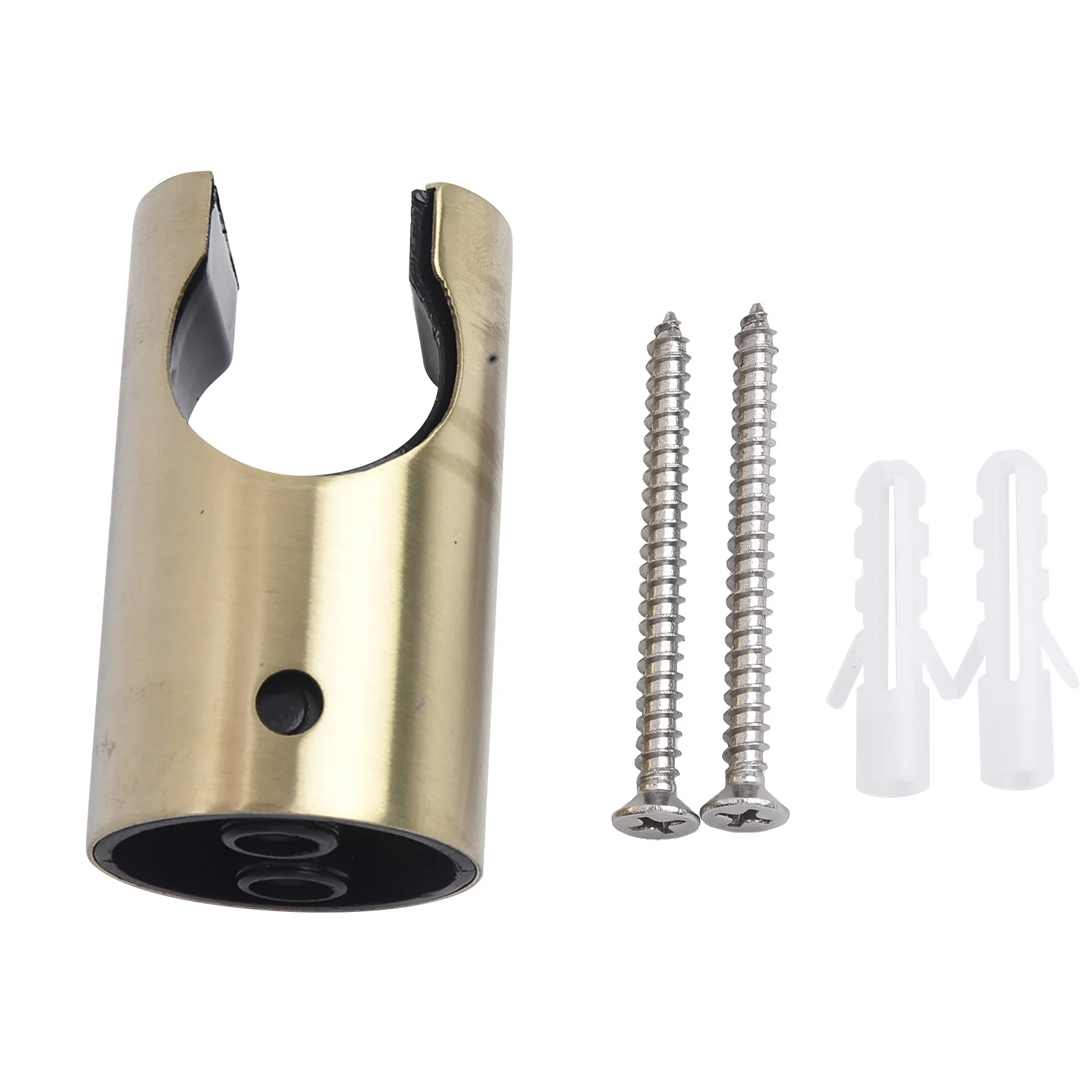 Enhance your bathroom with this sleek stainless steel handheld toilet bidet sprayer holder, measuring 56mm by 31mm. Crafted from high-quality stainless steel and ABS materials, it features a modern cylindrical design with a semi-open front that securely cradles hand shower heads, bidet sprayers, or shower heads, compatible with nearly all models. Available in black and gold finishes, it adds a touch of contemporary elegance to any bathroom decor. The wall-mountable design comes with all necessary mounting hardware for quick and easy installation, making it a durable and stylish accessory to keep your shower essentials organized and within reach.