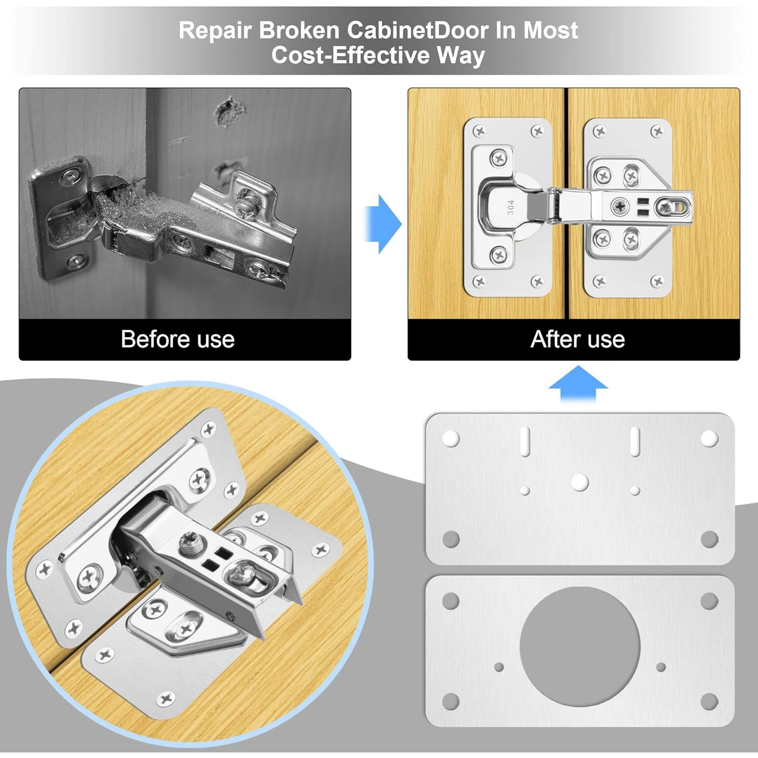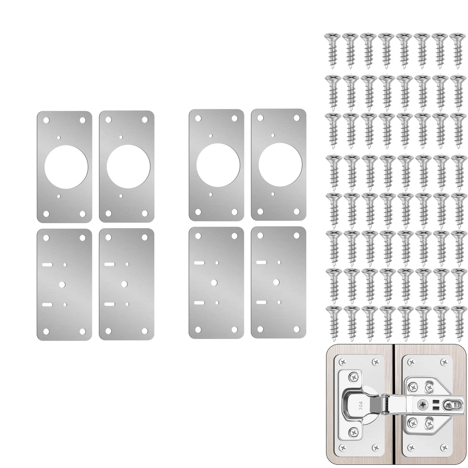 - Includes 2, 4, 8, or 12 stainless steel plates tailored for cabinet hinge repairs, ensuring versatile options to suit any project or multiple repairs.