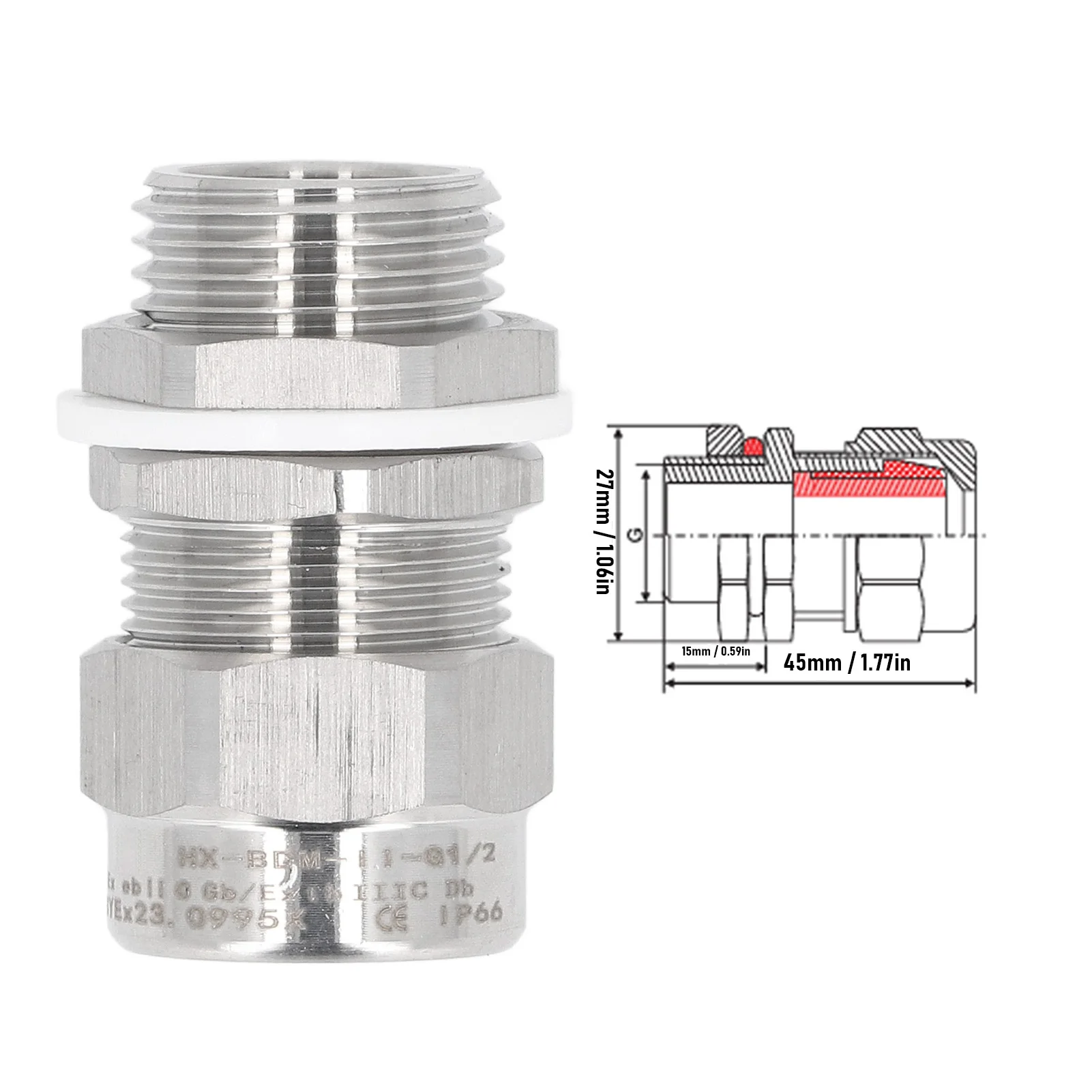 - Designed with a G1/2 threaded connection, accommodating cables of 5-12mm diameter for versatile and reliable fittings across various devices.