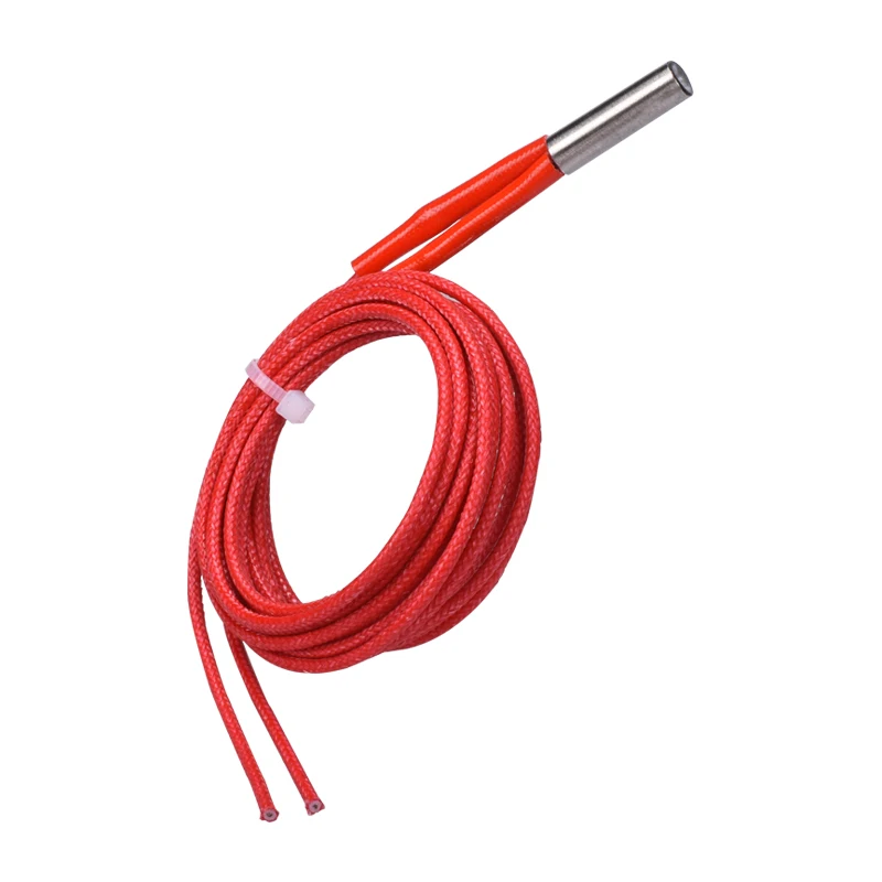 Imagine achieving optimal heating performance with this high-quality cartridge heater. Crafted in a sleek 6x20mm stainless steel cylinder, it offers exceptional corrosion resistance and durability. Its polished, reflective surface showcases a modern, professional look, while the bright red insulated wires with braided texture add a vibrant contrast, emphasizing robustness. The wires are neatly coiled and secured with a small white plastic zip tie, ensuring tidy organization. Designed for precision, this heater provides uniform heat distribution and long-lasting performance, minimizing oxidation even under high temperatures. Ideal for enhancing your 3D printer hotend, heat block, or other heating needs, it guarantees smooth and reliable operation, giving you confidence in your craftsmanship.