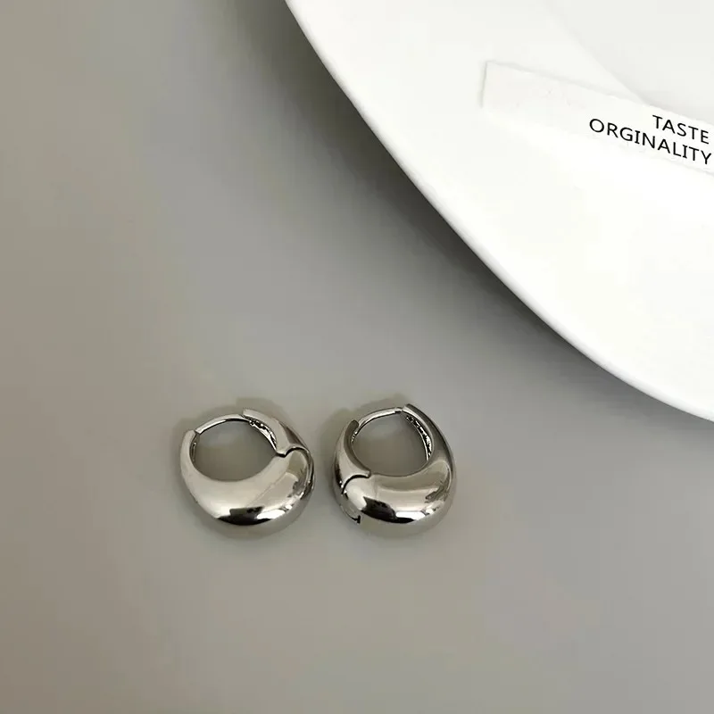 Experience the contemporary elegance of these stainless steel chunky hoop earrings. With their polished metallic finish, they catch the light beautifully, adding a touch of sophistication to your daily and chic outfits. Designed with a minimalist, modern aesthetic, these earrings feature a small, chunky round shape that makes a bold statement without being overpowering. Measuring approximately 27mm in length and 20mm in width, they are lightweight yet impactful, perfect for enhancing any look. The smooth, shiny surface emphasizes their sleek, geometric style, making them a versatile addition to your jewelry collection. Crafted from high-quality copper alloy, these earrings are durable, stylish, and suitable for daily wear, offering the perfect blend of fashion and comfort.