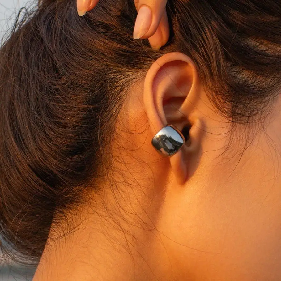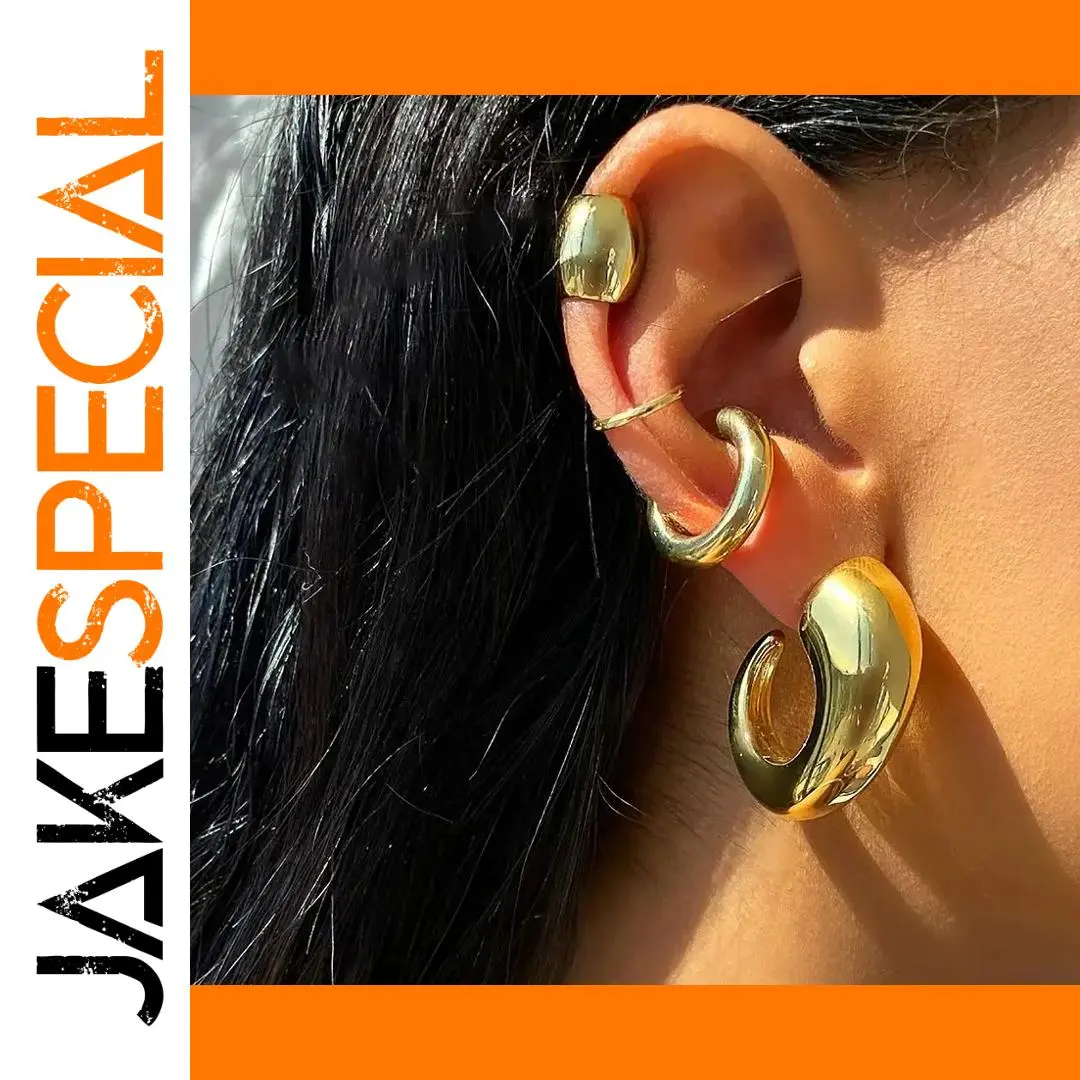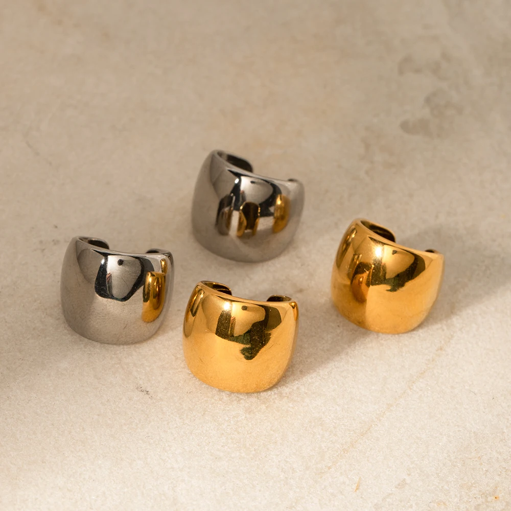 Elevate your style with these stainless steel minimalistic chunky round huggie earrings, featuring a sleek PVD gold finish for long-lasting color and scratch resistance. Designed as non-piercing clip-ons, they weigh 15 grams and offer a modern, elegant look with their bold, reflective surfaces and smooth, rounded shapes. Available in model numbers JDE2309044 and JDE2309044-S, these waterproof earrings are free from nickel, lead, and cadmium, ensuring both durability and comfort. Perfect for creating a statement or adding a sophisticated touch to everyday outfits, they are an essential addition to any modern jewelry collection.
