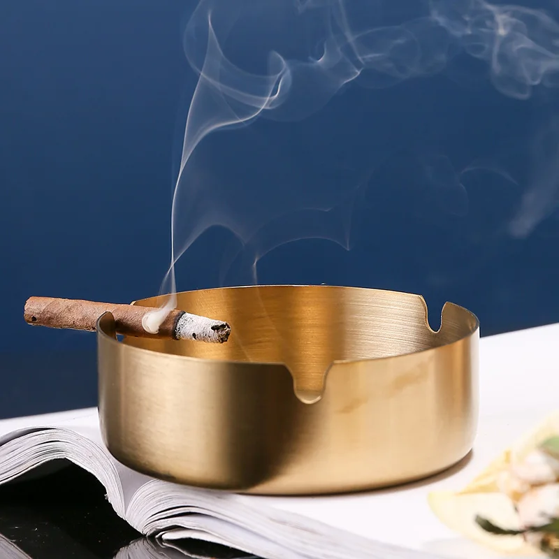 Experience the perfect blend of modern design and practicality with this this sleek, round stainless steel cigarette ashtray. Measuring 8 centimeters in diameter, it offers a compact, stylish solution for tabletop use. Its brushed finish adds a sophisticated touch, whether in classic silver or warm gold, making it an ideal accessory for any smoking area. Crafted for durability and ease of cleaning, this ashtray features a gentle curved cutout on one edge to hold cigarettes or cigars securely. Its minimalist aesthetic complements contemporary decor, elevating your space while serving a functional purpose. Whether for personal use or as a thoughtful gift, this ashtray provides a refined smoking experience in a compact, attractive package.