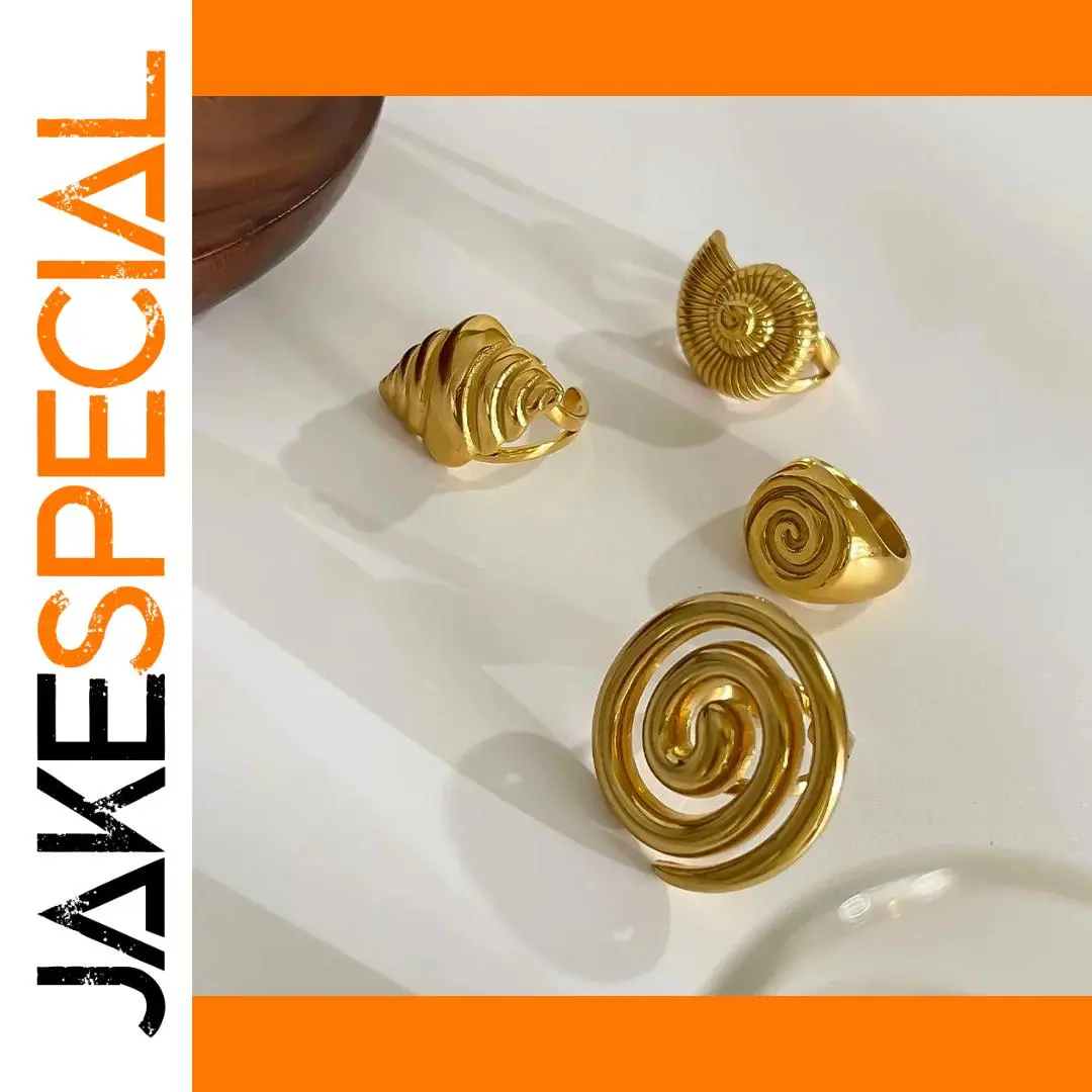Enhance your style with this bold stainless steel open ring featuring a glossy, twisted spiral design finished in gold. Crafted for women, it boasts a chunky, round shape that exudes modern charm with a touch of gothic and punk influences. Its versatile style makes it perfect for parties, anniversaries, or romantic outings. The ring is available in multiple color options, each highlighting a unique main stone color. With a durable stainless steel construction, it offers a fashionable yet resilient accessory that adds striking sophistication to any occasion, allowing you to showcase your individual style with confidence.