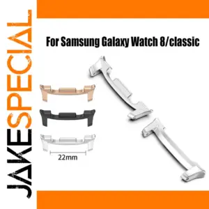 Elevate your Samsung Galaxy Watch 8 with this set of two stainless steel connectors designed as 22mm watchband adapters for Galaxy Watch 8 40mm and 44mm models. Crafted from durable stainless steel, these sleek connectors come in three color options—black, rose gold, and silver—adding a touch of style to your wristwear. They feature a smooth, polished finish with precise indentations for a secure fit and a refined look. Each connector’s elongated, slightly curved shape seamlessly integrates with your watch’s design, allowing you to personalize and upgrade your watchbands effortlessly. Compatible specifically with Galaxy Watch 8 and Galaxy Watch 8 Classic, these adapters provide both functionality and elegance.
