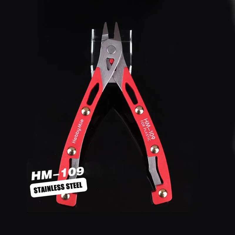 Experience precise cutting with this stainless steel model making tool, featuring a single-edge blade with a high hardness of HRC 58 for durability and accuracy. The HM-109 model has ergonomically bent handles coated in vibrant red, providing a comfortable grip and slip resistance during use. Its streamlined design includes cutout handles for lightweight operation, making it ideal for cutting plastics and other materials in craft and model-making projects. Built with high-quality, corrosion-resistant stainless steel, this versatile nipper offers clean, accurate cuts every time, enhancing your craftsmanship with professional-grade performance. Elevate your hobby with this durable, ergonomically designed cutting tool tailored for precision and comfort.