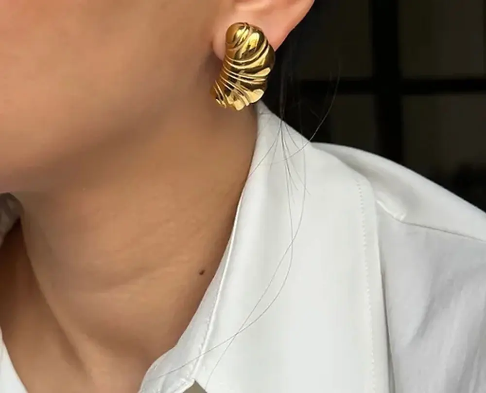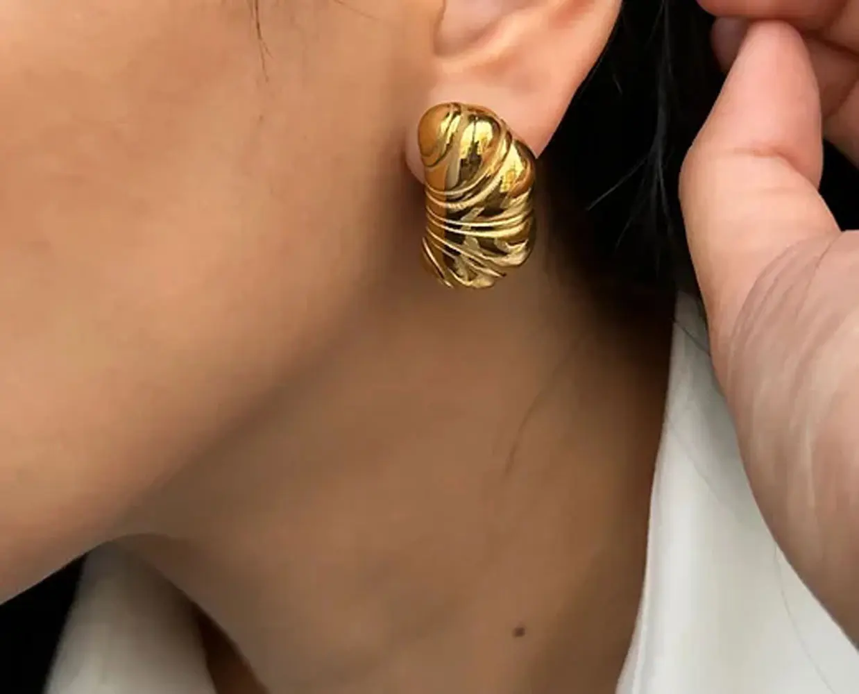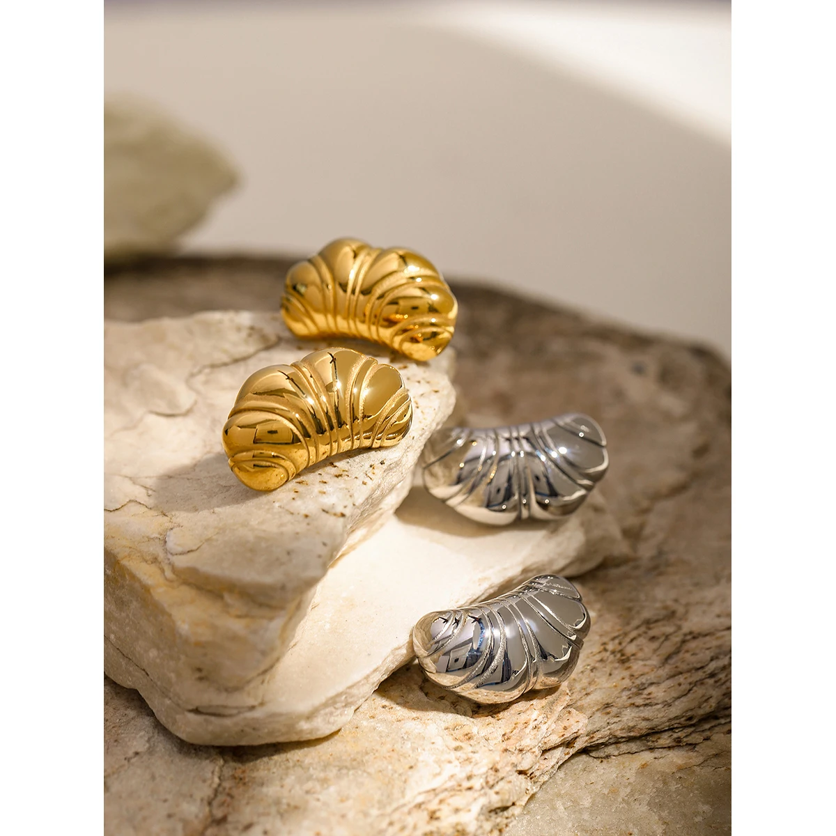 Elevate your accessory game with these elegant croissant-shaped earrings, crafted from durable stainless steel coated with PVD gold for a lasting, luxurious glow. The design combines modern geometric elements with a playful food-inspired motif, perfect for adding a fun yet sophisticated touch to any outfit. Their polished, reflective surface captures light beautifully, enhancing your overall look. With a comfortable fit and moderate size, these stud earrings are ideal for daily wear or special occasions. The sturdy stainless steel construction makes them waterproof and resistant to scratches and fading, ensuring they stay vibrant over time. Experience the blend of style, durability, and fun with these unique earrings that express your personality effortlessly.