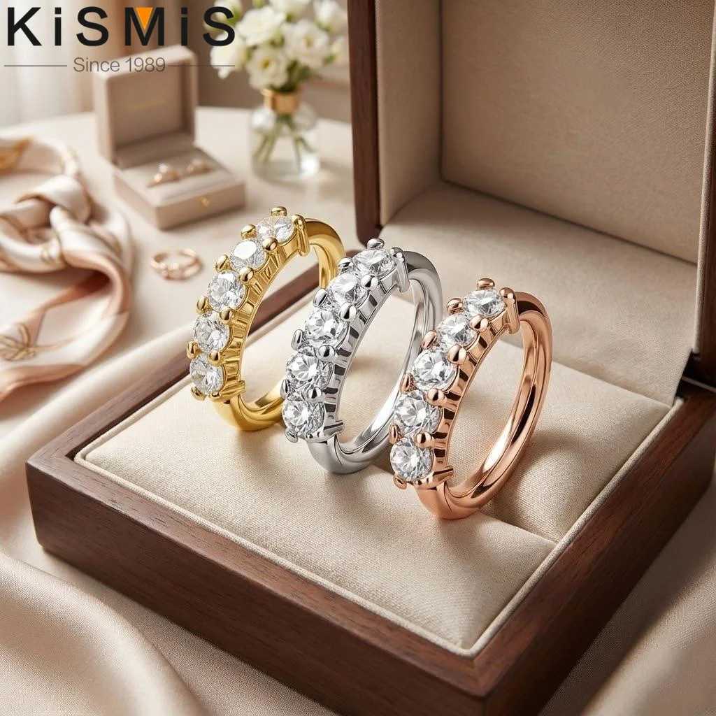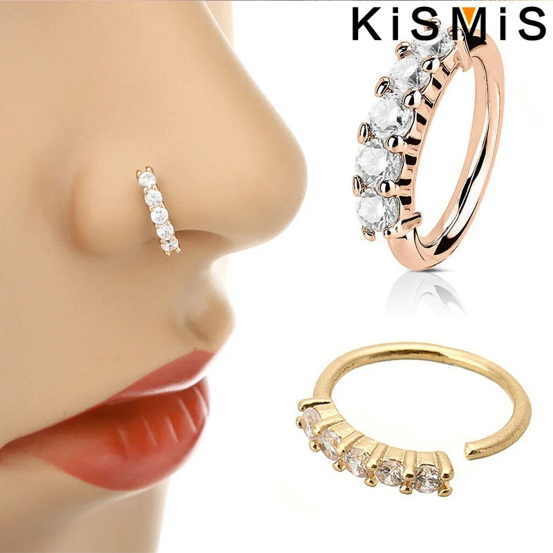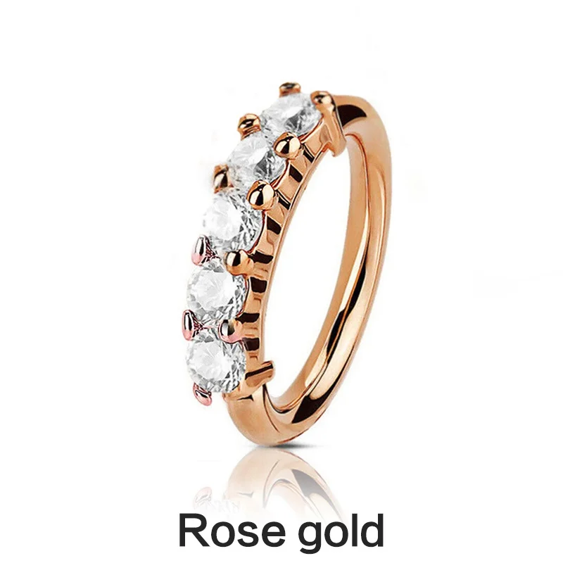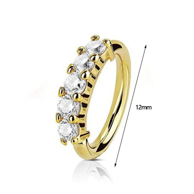 - The sparkling, clear zircon stones are securely set along the top half, creating a dazzling effect that enhances your piercing with a luxurious touch.