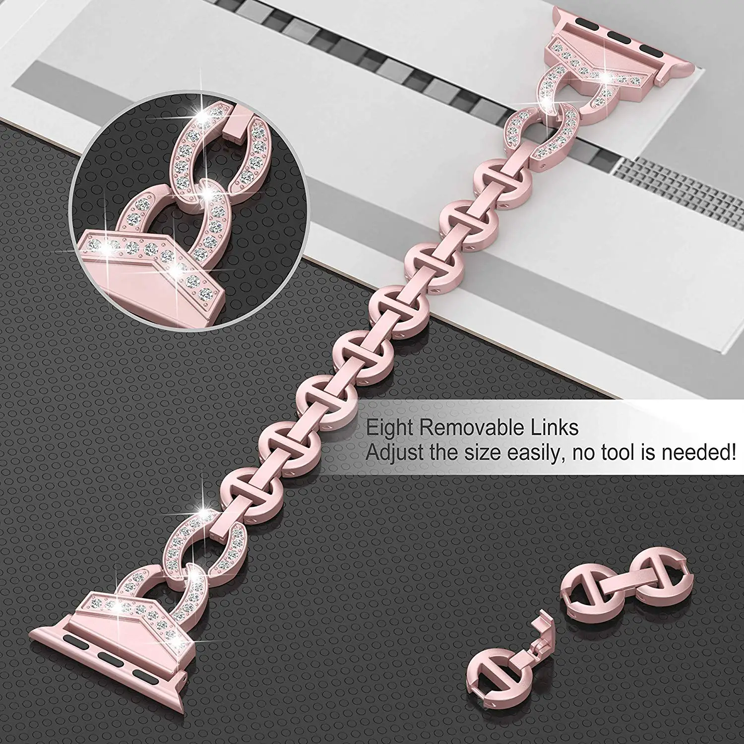 Experience the perfect blend of luxury and modern elegance with this stainless steel diamond bracelet designed specifically for Apple Watch models. Featuring a sleek polished finish, this band radiates sophistication and high-end style. The interconnected links are adorned with sparkling diamonds, adding a touch of glamour that elevates your look for any occasion. Its versatile design ensures compatibility across a wide range of Apple Watch sizes, including 38mm, 40mm, 41mm, 42mm, 44mm, 45mm, 46mm, and 49mm, covering Series 1 through 10 and SE models. Choose from three elegant colors—silver, black, and rose gold—to match your personal style effortlessly. This unisex band offers a luxurious upgrade that seamlessly combines fashion with functionality.