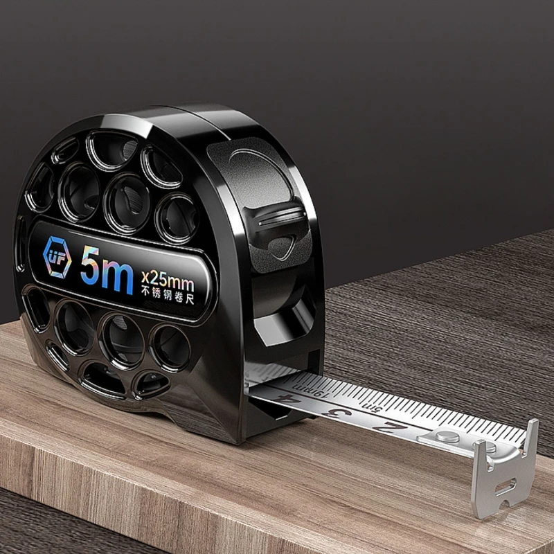 Experience the perfect blend of modern design and practical functionality with this high-tech stainless steel tape measure. Available in 3m, 5m, and 7.5m lengths, it features an elegant hollow structure with anti-corrosion properties, ensuring durability in demanding environments. The compact, rounded housing comes in stylish black or silvery finishes, giving it a professional appearance suitable for woodworking, DIY projects, or precise measurements. The bright blue backlit digital screen offers clear, immediate measurement readings, making your tasks easier and more efficient. Its stainless steel tape with finely engraved markings guarantees accuracy. Being laser engraving compatible, this tool enhances customization and craftsmanship, making it an essential addition to your toolkit. This tape measure not only looks premium but provides reliable, instant measurement data whenever you need it.