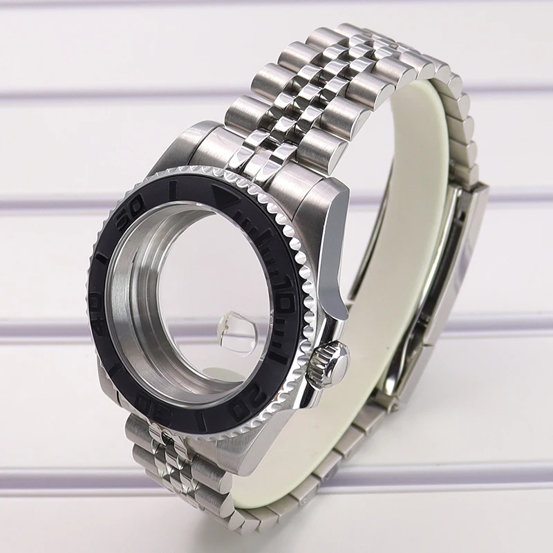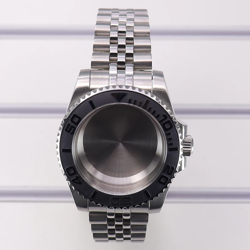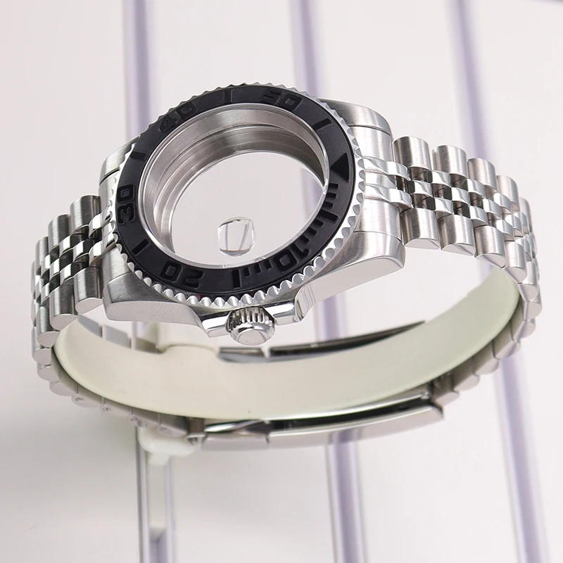 Upgrade your collection with this premium 40mm stainless steel dive watch case and bracelet. Whether you're building a professional diver's watch or seeking a reliable everyday statement piece, this set offers unparalleled craftsmanship and water resistance up to 100 meters. Its polished and brushed finishes, along with the ceramic inlaid border and tough sapphire crystal glass, make it a durable and stylish choice for any enthusiast or professional. Buy now and enjoy the confidence of owning a high-quality, versatile watch component that combines rugged features with elegant design.