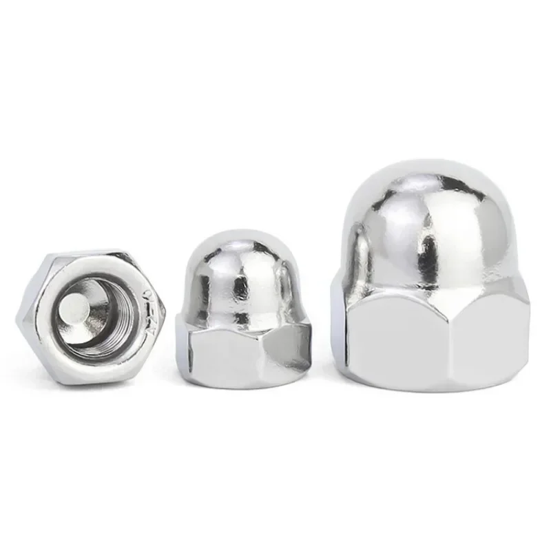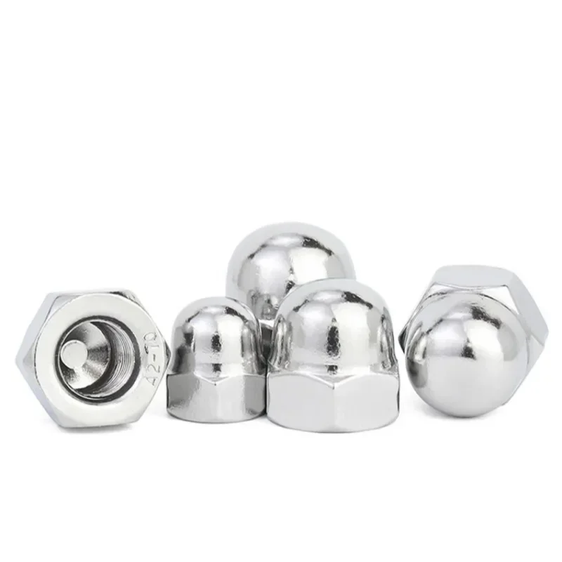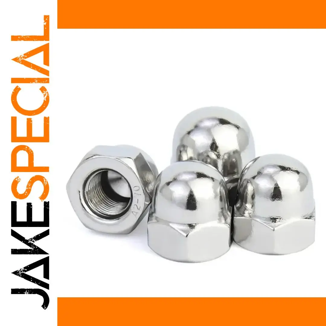 Enhance your projects with this set of five stainless steel dome cap nuts in sizes M3, M4, M5, M6, and M10. Crafted from durable 304 stainless steel, these acorn nuts feature a smooth, polished, mirror-like finish with a rounded domed head that protects external threads and provides a sleek, professional look. Their chemically resistant and mildly magnetic properties make them ideal for automotive, engineering, and industrial use. The precisely machined internal threads and sturdy hexagonal bases ensure easy installation with wrenches or sockets. This high-quality set is perfect for both functional and decorative applications, offering a seamless blend of durability and modern design.
