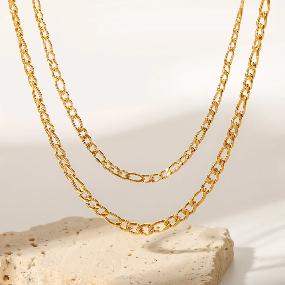 - This trendy double-layer necklace is made of stainless steel with a durable PVD gold finish, guaranteeing long-lasting color, resistance to fading, and scratch-proof wear for daily use.