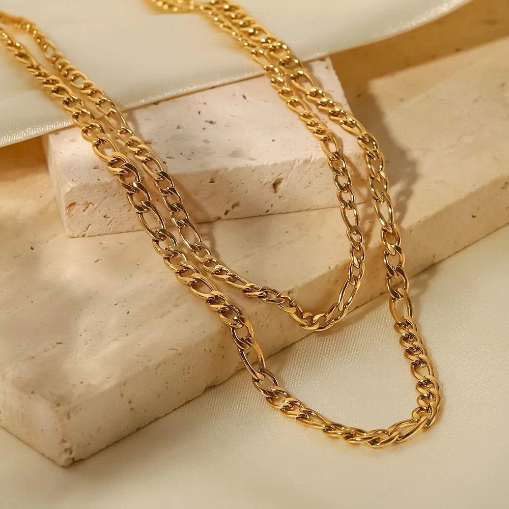 Experience the perfect blend of modern design and durability with this stunning stainless steel gold double-layer necklace. Complementing any outfit, it adds a touch of sophistication and fun that suits every occasion. Whether you're dressing up for a party or adding a chic accent to your casual attire, this necklace promises to become your favorite jewelry piece. Its high-quality craftsmanship ensures you'll enjoy it for years to come. Don’t wait—make this elegant statement yours today and showcase your unique style with confidence!