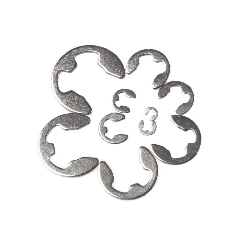 - Designed in a distinctive “E” shape with a semi-open profile, the clips fit securely into shaft grooves, providing excellent retention without deformation over time.