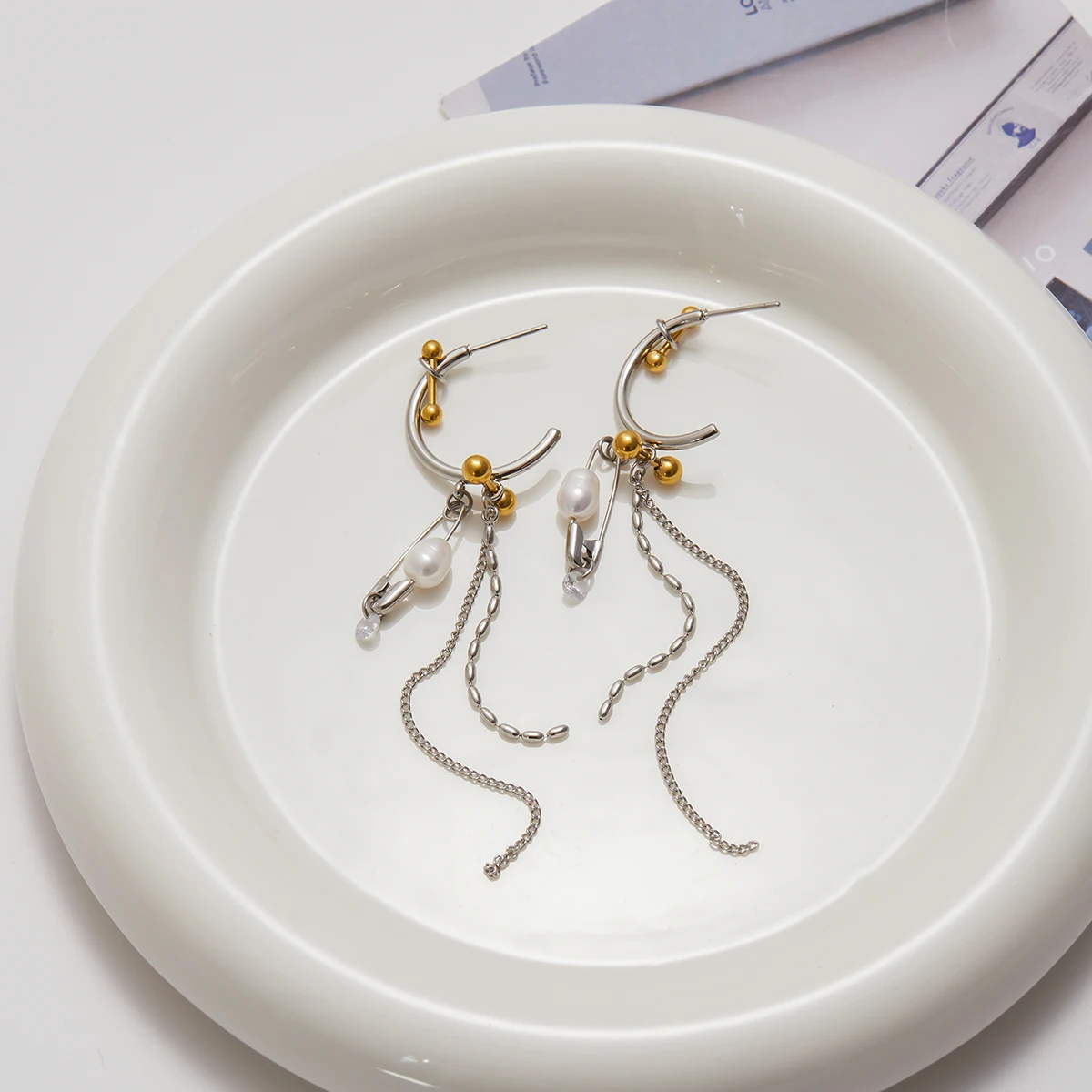 - Each earring combines durable stainless steel construction with stylish details such as pearls, beads, and chains, perfect for fashionable daily wear or special occasions.