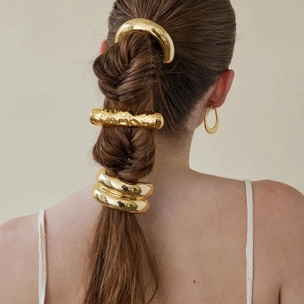 Enhance your style with this high-quality stainless steel hair accessory, featuring a thick hammered finish and geometric shape pattern. Crafted from zinc alloy, this trendy piece blends modern, punk, and gothic aesthetics, making it perfect for parties, anniversaries, dates, or vacations. Designed as an elastic scrunchie with metal ropes, it functions beautifully as a hairpin, headwear, or jewelry item. Available in a variety of stylish color options within the H175 and H171 series, these versatile accessories offer a bold statement to elevate your fashion game, combining durability with eye-catching, sculptural design elements for an edgy, contemporary look.