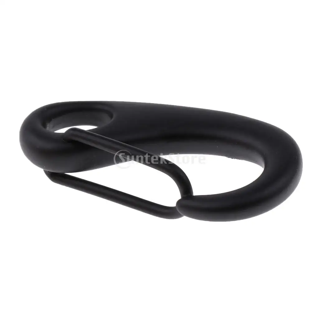 Imagine securing your diving gear with confidence using this sleek, black egg-shaped quick link carabiner. Its smooth, rounded, elongated egg shape offers a minimalist aesthetic combined with rugged durability. Made from high-quality 316 stainless steel, it resists corrosion, making it ideal for underwater environments. Whether attaching SMBs, dive reels, or gear to your BCD or weight belt, this carabiner ensures a reliable, secure connection. Its spring-loaded rectangular gate provides quick attachment and release, streamlining your setup process. The matte black finish not only looks professional but also reduces reflections underwater. Feel assured knowing your gear stays in place during your dive, thanks to this durable and easy-to-use hardware designed for demanding diving activities.