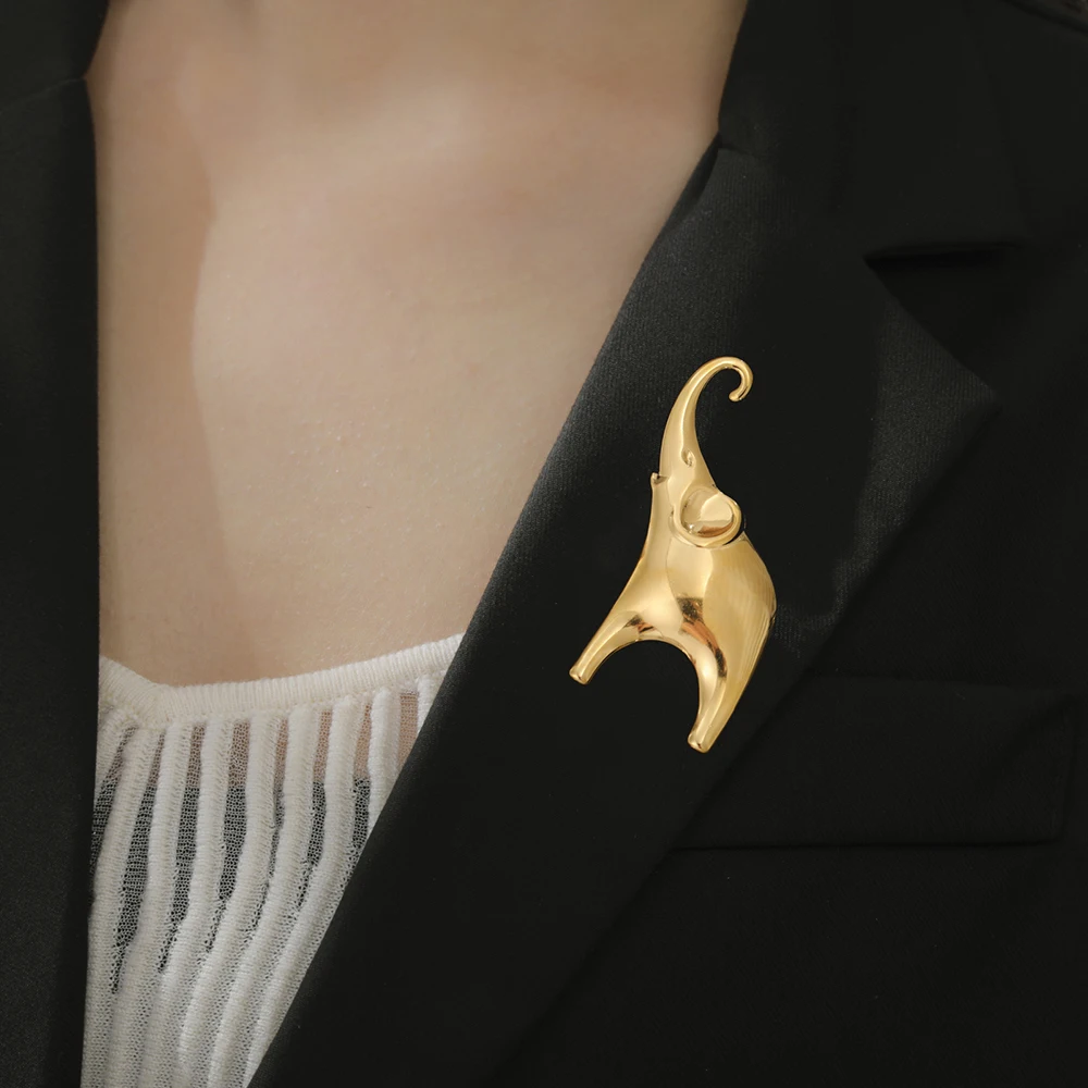Enhance your style with this stainless steel elephant brooch, measuring 66 x 36 mm and featuring a sleek two-tone design in steel and gold. Crafted from durable 304 stainless steel, it showcases a modern, minimalist elephant shape that exudes elegance and sophistication. Perfect for both men and women, this vintage-style animal totem pin adds a touch of safari chic to jackets, scarves, or bags. Its smooth, polished surface reflects light beautifully, emphasizing craftsmanship and contemporary appeal. Whether for everyday wear or special occasions, this stylish accessory combines durability and aesthetic appeal, making it an ideal gift for animal lovers and fashion enthusiasts alike.