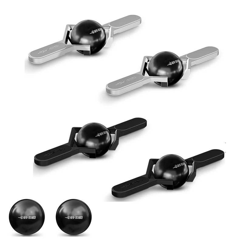 - Comes with minimalist, paddle-like stands holding the balls securely, made in sleek black or polished silver to match the spheres.