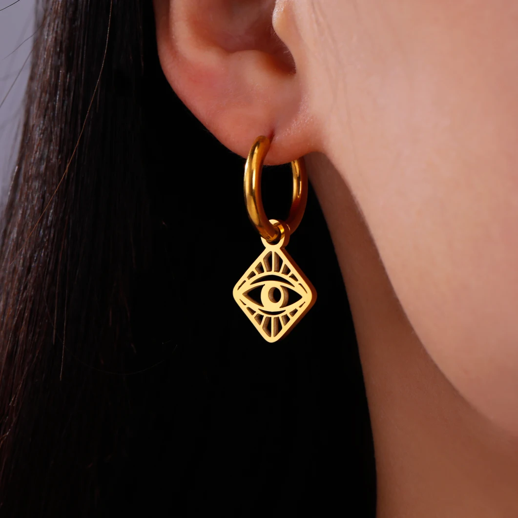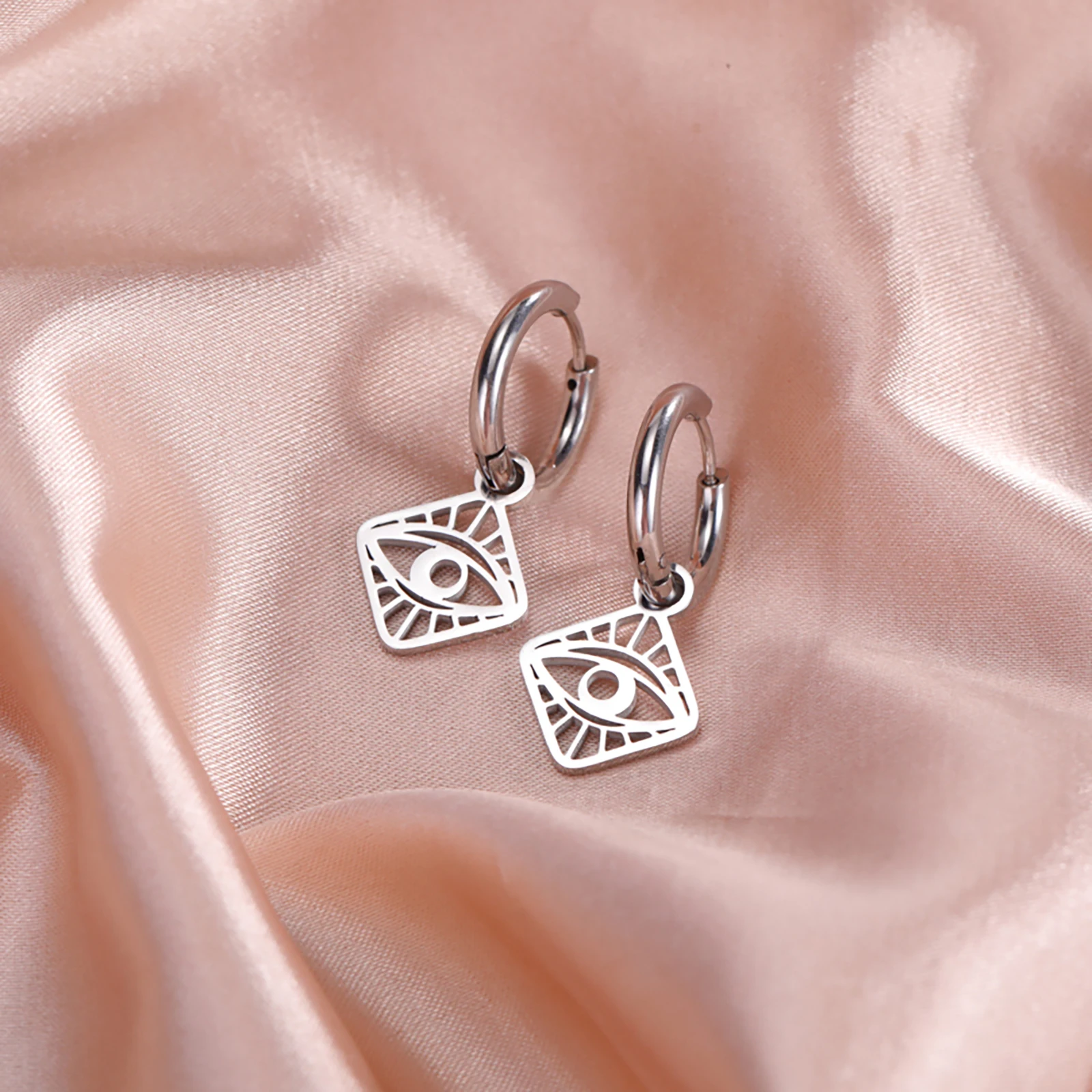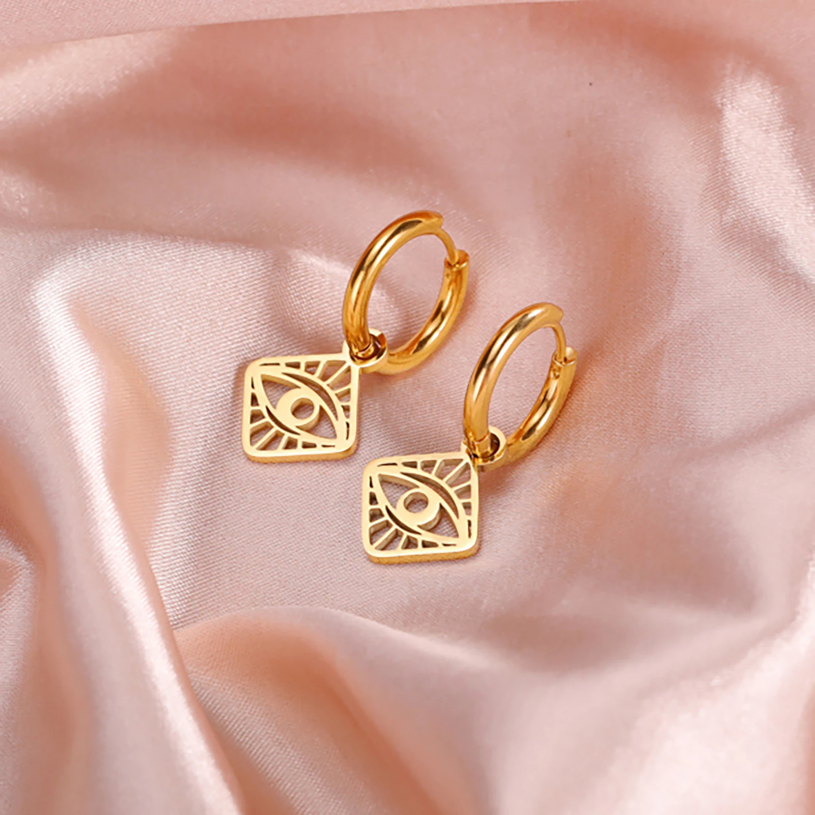 Imagine yourself confidently wearing these elegant earrings, adding a hint of sophistication and a symbol of good fortune to your ensemble. Their sleek, modern design complements any wardrobe, making you feel stylish and protected wherever you go. Made from high-quality stainless steel, these earrings will stand the test of time, resisting tarnish and fading. Whether for everyday wear or special occasions, they are a versatile and thoughtful choice. Elevate your jewelry collection with this meaningful, fashionable accessory today and enjoy the confidence that comes with timeless design and symbolic protection.
