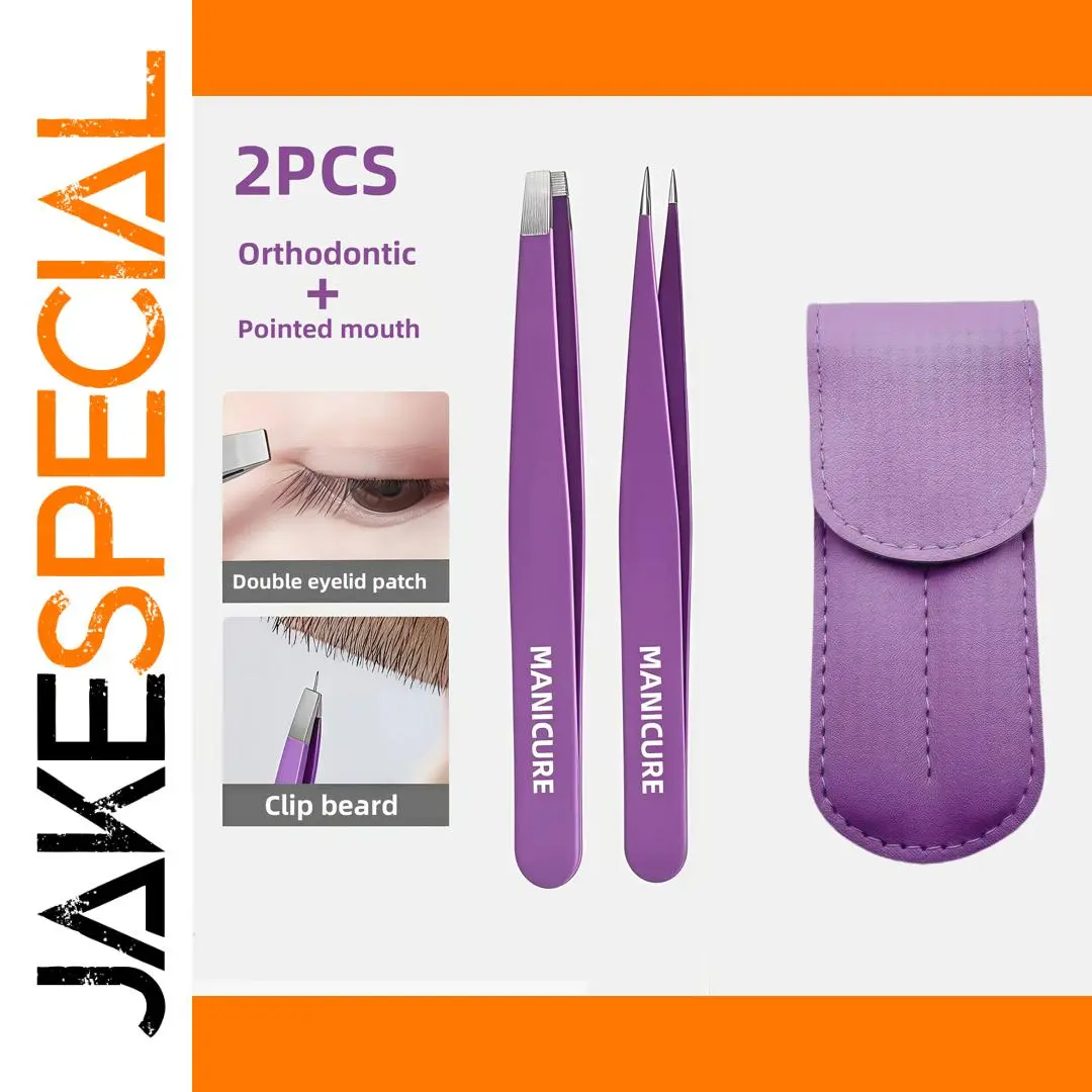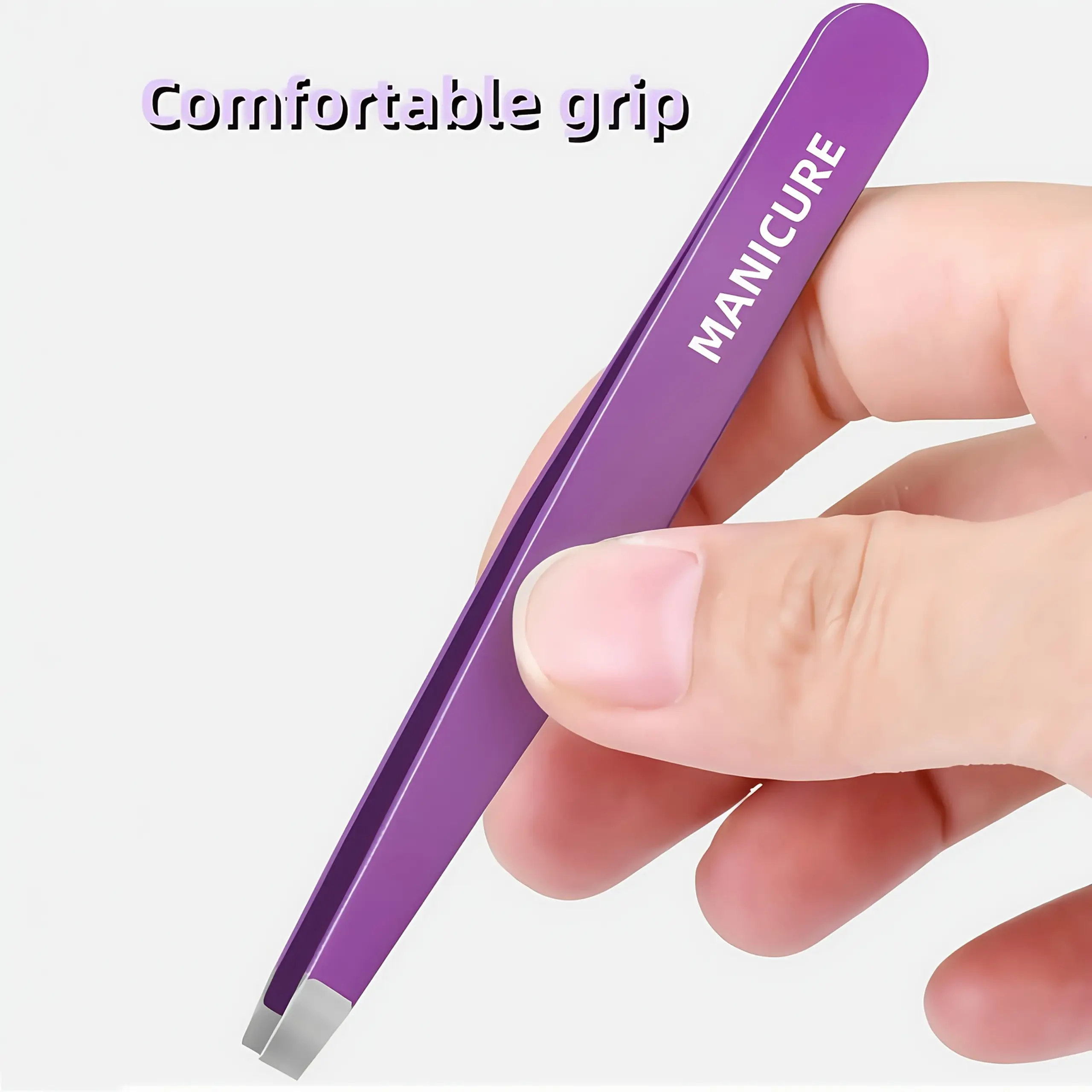 Achieve flawless eyebrows with this 2-piece stainless steel eyebrow tweezer set, featuring a precision pointed tweezer with a sharp, narrow tip for delicate removal, and a flat-tip tweezer with a straight, flat end designed for gripping multiple fine hairs securely. Crafted from durable stainless steel, these high-precision tools offer a smooth, pain-free plucking experience, ideal for detailed shaping and grooming of eyebrows and eyelashes. The set combines functionality with modern style, ensuring you can easily tackle even the tiniest hairs in hard-to-reach areas. Elevate your beauty routine with these professional-grade tweezers to perfect your look every time.