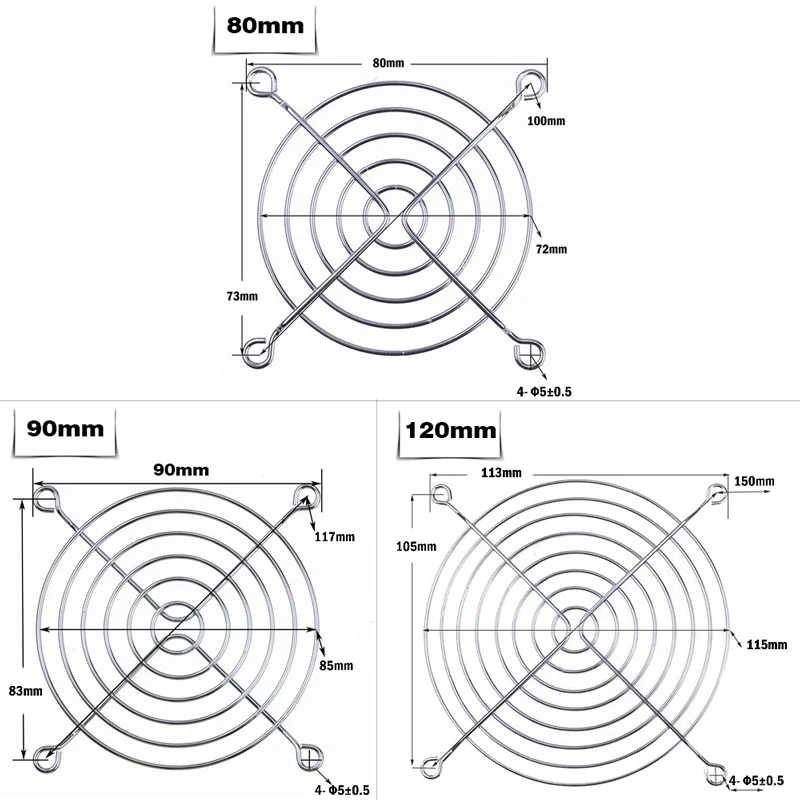 Enhance the safety and durability of your cooling fans with these sleek, circular protective mesh covers available in 80 cm, 90 cm, and 120 cm sizes. Crafted from durable, corrosion-resistant metal, these fan grills feature a modern design with concentric circles connected by radial spokes, providing a robust barrier against debris and physical contact. Each cover has four small loops at the perimeter for secure attachment. Suitable for 80 mm, 90 mm, and 120 mm fan diameters, they come in packs of five and are ideal for long-lasting, reliable protection of computer case fans and cooling units, ensuring optimal ventilation while safeguarding your hardware.