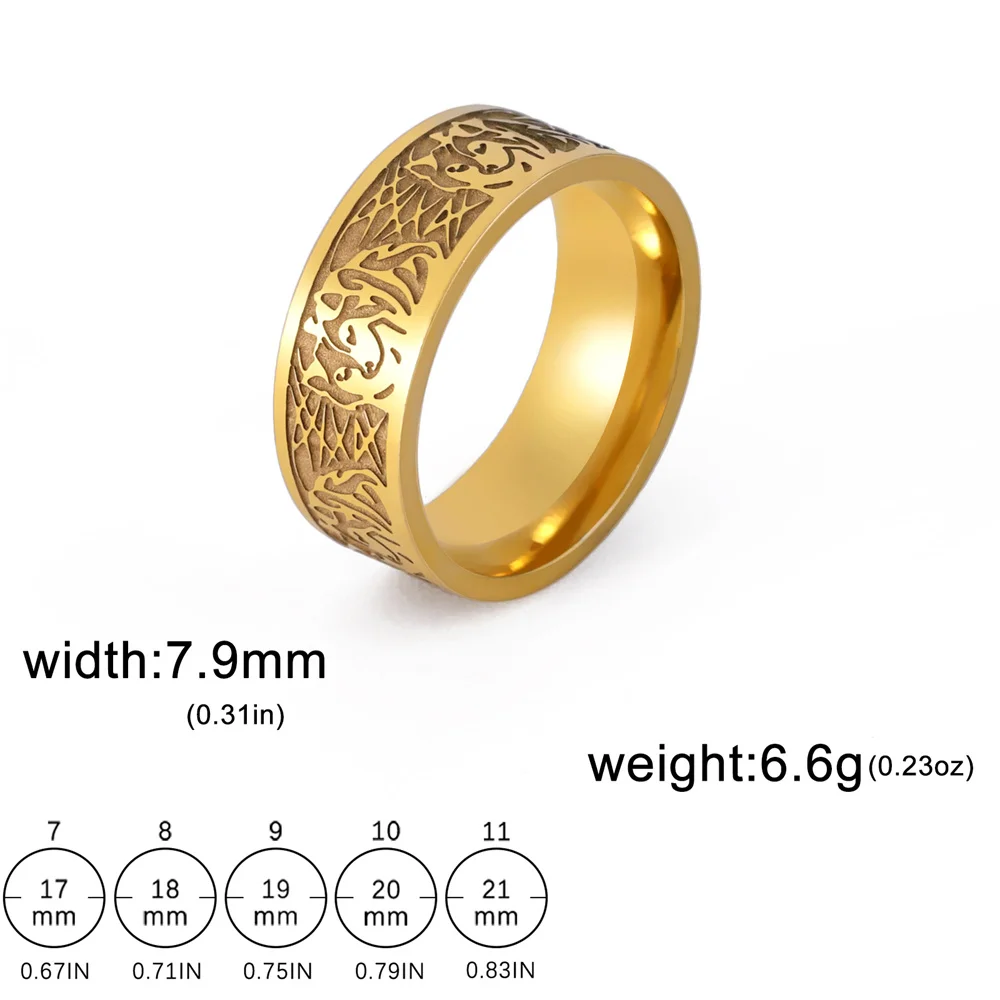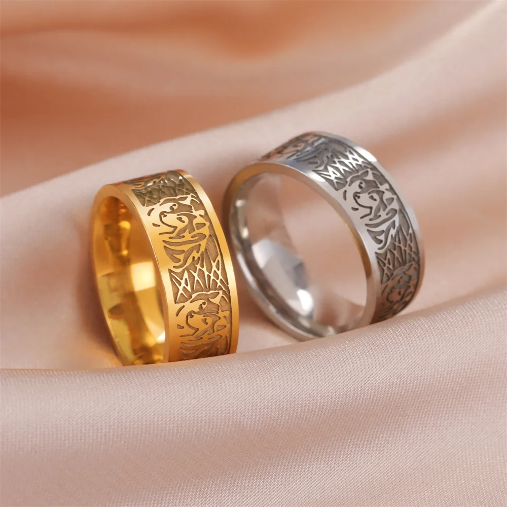 Discover our unisex stainless steel ring featuring a striking vintage animal design of a Fenrir wolf or fox motif, available in 8mm or 10mm width. Crafted for durability, it resists rust, corrosion, deformation, and fading while offering a hypoallergenic, high-polish finish in silver or gold color, with optional 18k gold plating. Designed in sizes 7 to 12 with inner diameters from approximately 53.4mm to 67.2mm, this bold accessory adds a mysterious, tribal-inspired touch to any occasion, whether for everyday wear, special events, or symbolic gifting. Experience a perfect blend of cultural symbolism and exceptional craftsmanship that feels both comfortable and timeless.