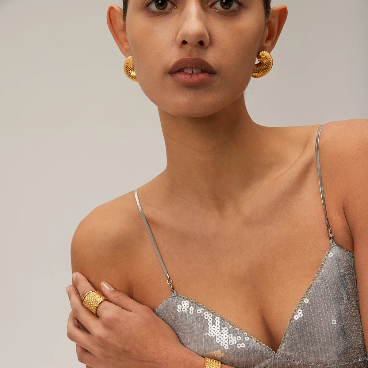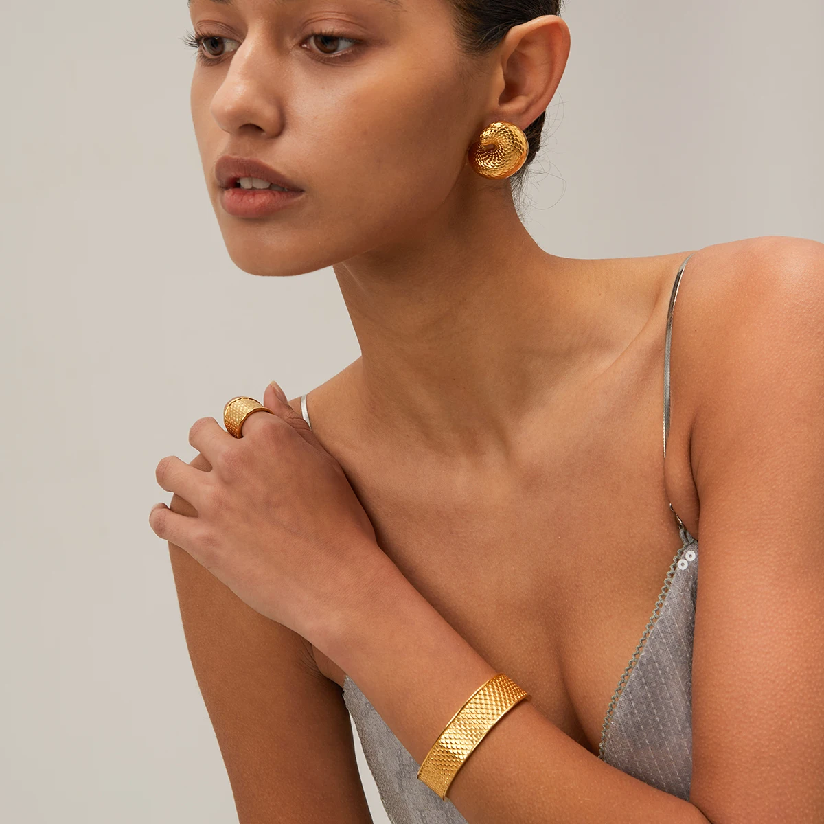 - This trendy women's ring is crafted from high-quality stainless steel with a PVD gold coating, combining durability and luxury in a single statement piece for daily or party wear.
