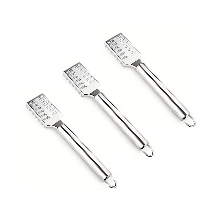 Experience effortless fish scaling with this durable stainless steel fish scaler featuring an integrated casting and duty sawtooth design. Its medium size and ergonomic handle provide a secure grip, reducing hand fatigue during use. Available in packages of 1, 2, or 3 pieces, this practical tool is easy to clean and ideal for home cooks seeking a quick, efficient fish preparation solution. The sleek, polished finish emphasizes durability and high-quality craftsmanship, making it a reliable addition to your seafood preparation toolkit. Simplify your fish cleaning process and enjoy professional results with this premium stainless steel fish scaler.