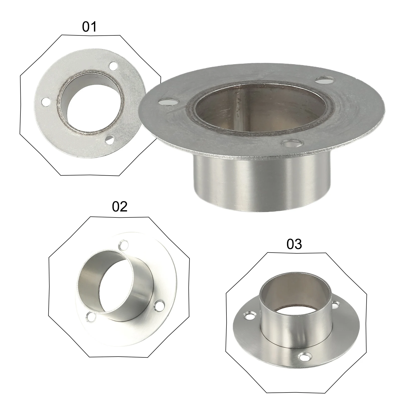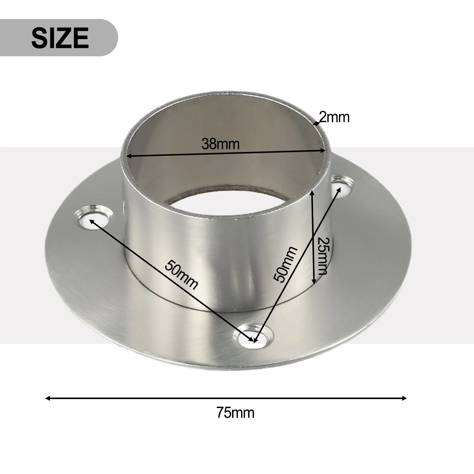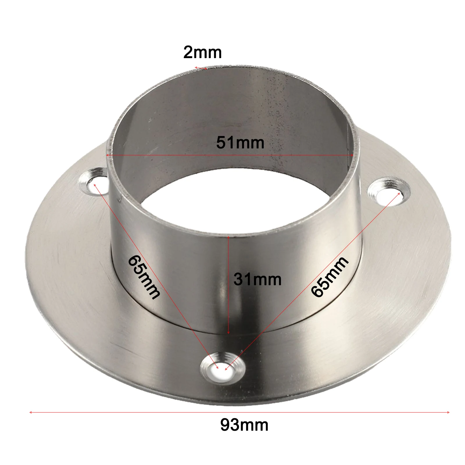 Transform your space with this sleek, durable stainless steel flange bracket, available in 38mm and 51mm sizes. Designed for versatility, these brackets provide a modern and minimalist look to wardrobe rails, display racks, hanging rails, or curtain rods. Made from high-quality stainless steel, they resist deformation, fading, and corrosion, ensuring longevity and strength in both commercial and home environments. Their simple yet functional design features a round connection flange with three evenly spaced screw holes, making installation straightforward and secure. Whether you're upgrading your closet, creating a custom display, or organizing your shop, these brackets offer reliable support with a refined metallic silver finish that complements any decor style. Enjoy a clean, professional look combined with lasting functionality.