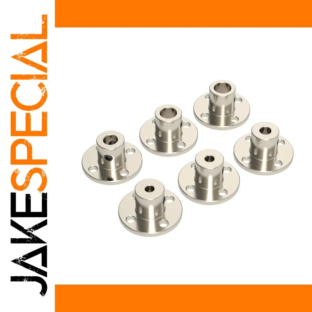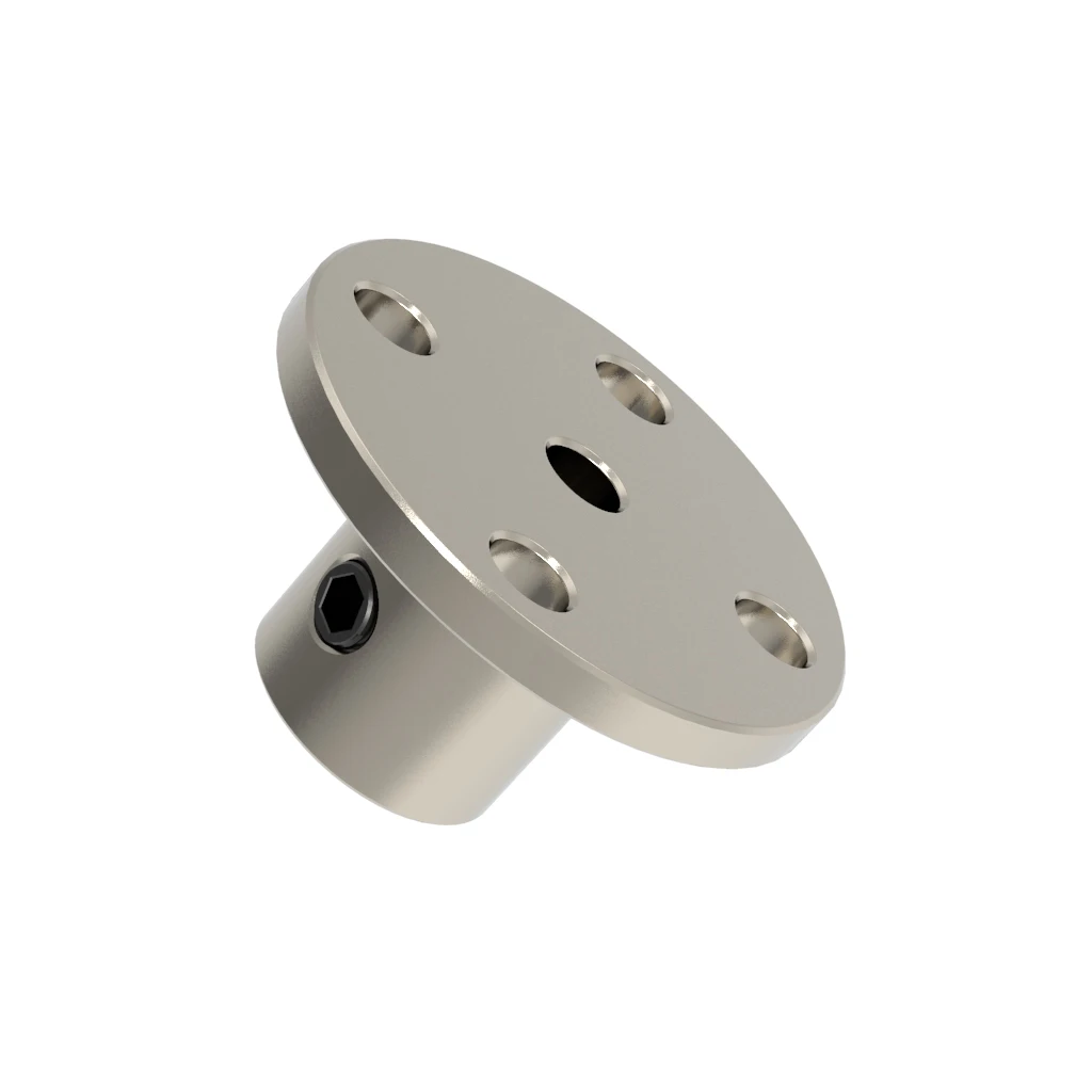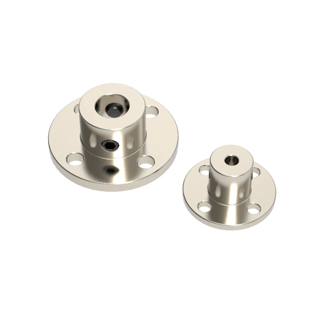 Experience reliable performance with this set of stainless steel rigid flange couplings, expertly crafted from heat-treated 45# steel and electroplated for corrosion resistance. Available in inner diameters ranging from 2mm to 14mm, these couplings feature precisely drilled M3 and M4 screw holes with diameters of 3mm and 4mm, spaced at 16mm or 24mm. The sleek, polished finish highlights their industrial aesthetic, while dimensions vary from 10mm to 18mm in cylindrical diameter and 10mm to 19mm in height, with baseplate diameters of 22mm or 32mm. Perfect for RC vehicles and DIY projects, each piece offers durability, precision, and versatility.