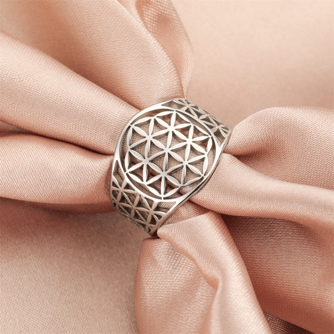 This this stainless steel Flower of Life ring is a must-have—order yours today!