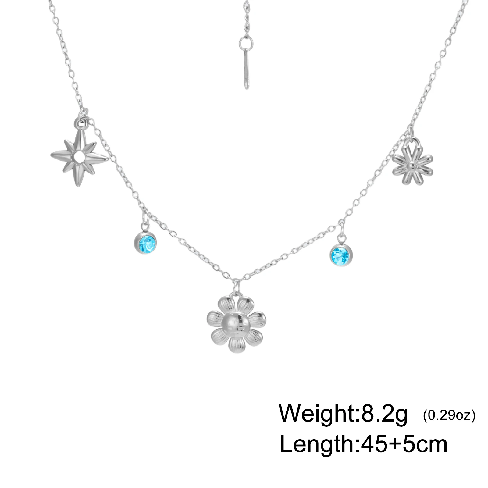 Keys features of the flower star blue rhinestone pendant necklace