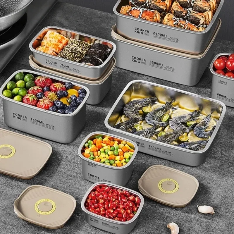 Imagine effortlessly organizing your kitchen, ensuring your food stays fresh, odor-free, and perfectly stored. These elegant stainless steel boxes combine modern durability with functional efficiency, making your daily meal prep and storage routines smoother. With their polished silver finish, they reflect a contemporary aesthetic that complements any kitchen decor. The square shape maximizes space, allowing you to neatly categorize vegetables, meats, fruits, or seafood in the fridge. Their secure lids with silicone gaskets provide an airtight seal, preserving flavor and freshness while preventing cross-contamination of odors. Whether at home, work, or on a picnic, this set makes food storage effortless, reliable, and hygienic—a true upgrade to your kitchen essentials.