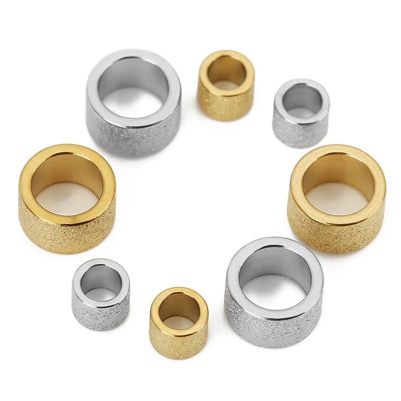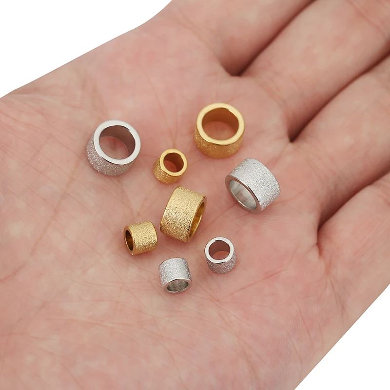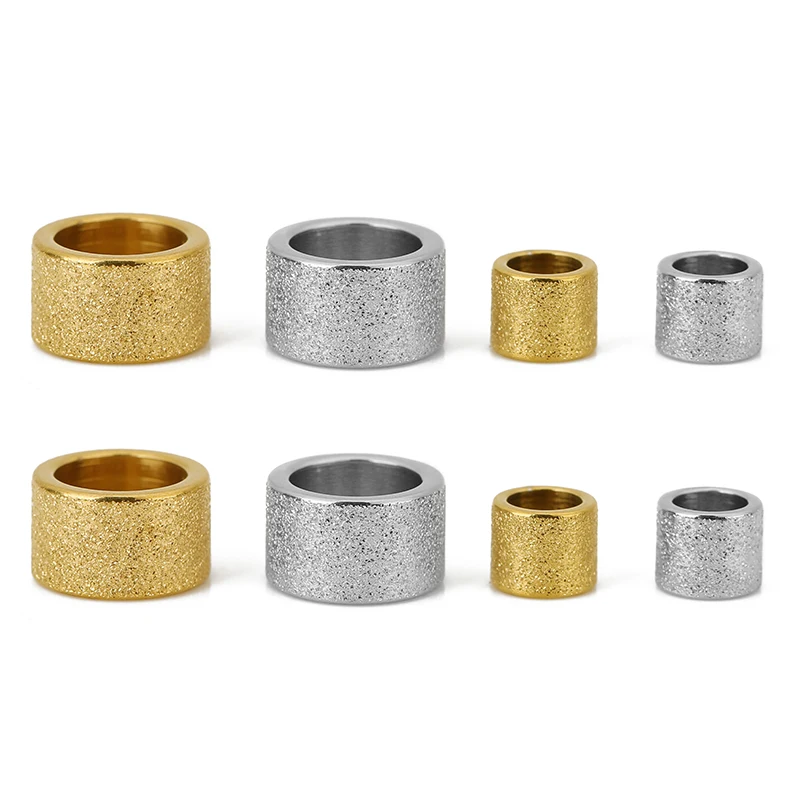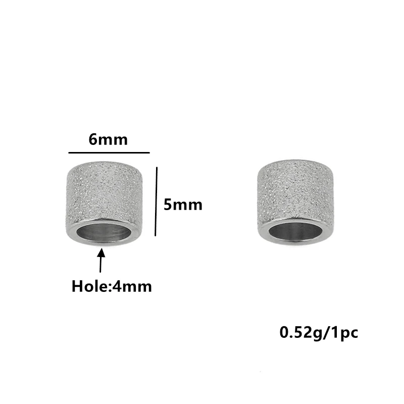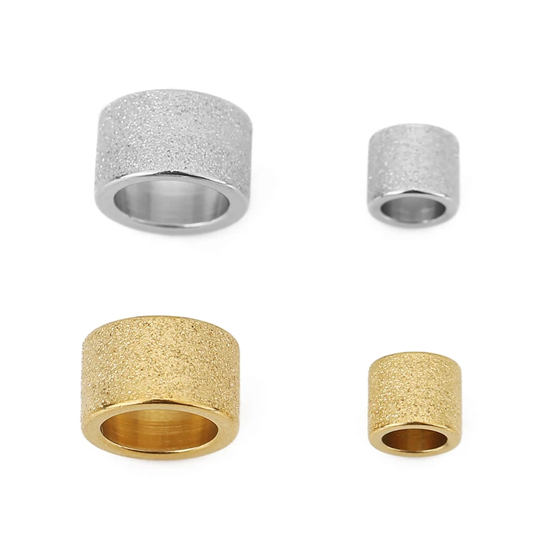 Enhance your jewelry creations with this set of 10 stainless steel frosted beads available in 6mm and 10mm sizes, featuring 4mm and 7.5mm central holes. The round tube design boasts a contemporary, textured matte finish in stylish steel and warm gold tones, ideal for DIY necklaces and bracelets. Crafted from durable stainless steel, these beads support various threading options with their large holes, offering versatility and a modern aesthetic to elevate your personalized accessories. Perfect for adding a touch of elegance and texture to your jewelry projects, these beads blend sleek design with high-quality materials for lasting beauty.