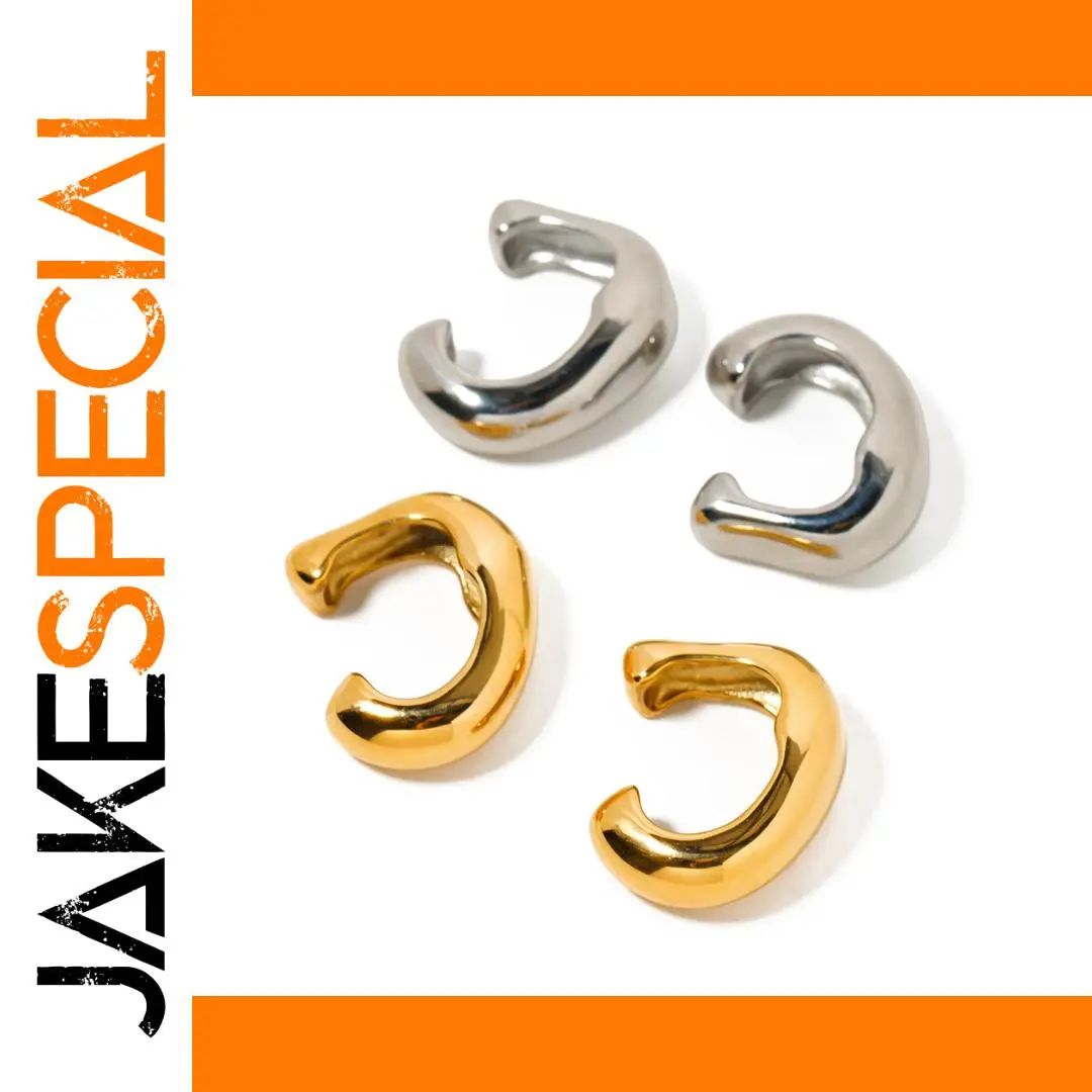 Imagine enhancing your everyday look with this set of four bold, geometric stainless steel earrings. Crafted with precision from high-quality stainless steel, these earrings feature shiny, polished surfaces that reflect light beautifully, adding a touch of sophistication to any outfit. Designed with minimalist, chunky crescent and horseshoe shapes, they balance a trendy aesthetic with comfort. Their waterproof and rust-resistant properties ensure durability for daily wear or special occasions. Non-piercing clip-on design makes them easy to wear and remove, offering convenience without sacrificing style. Whether you're going for an effortlessly chic look or making a confident statement, this versatile set elevates your fashion game with elegance and durability.