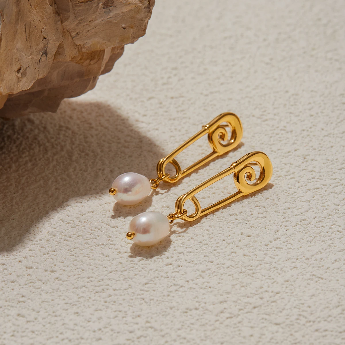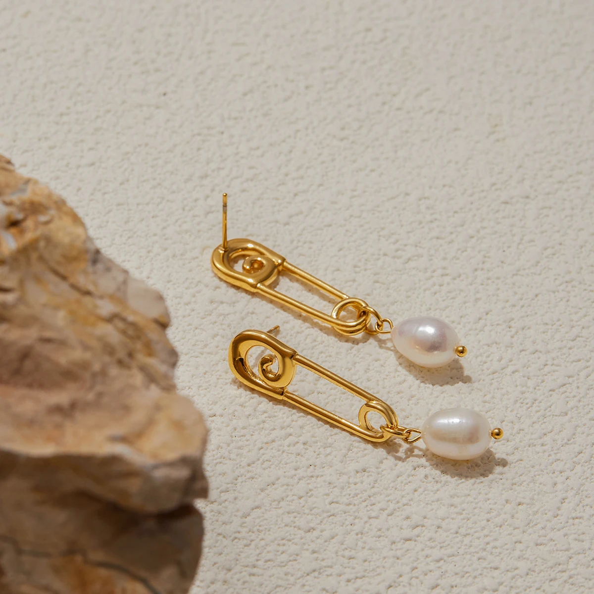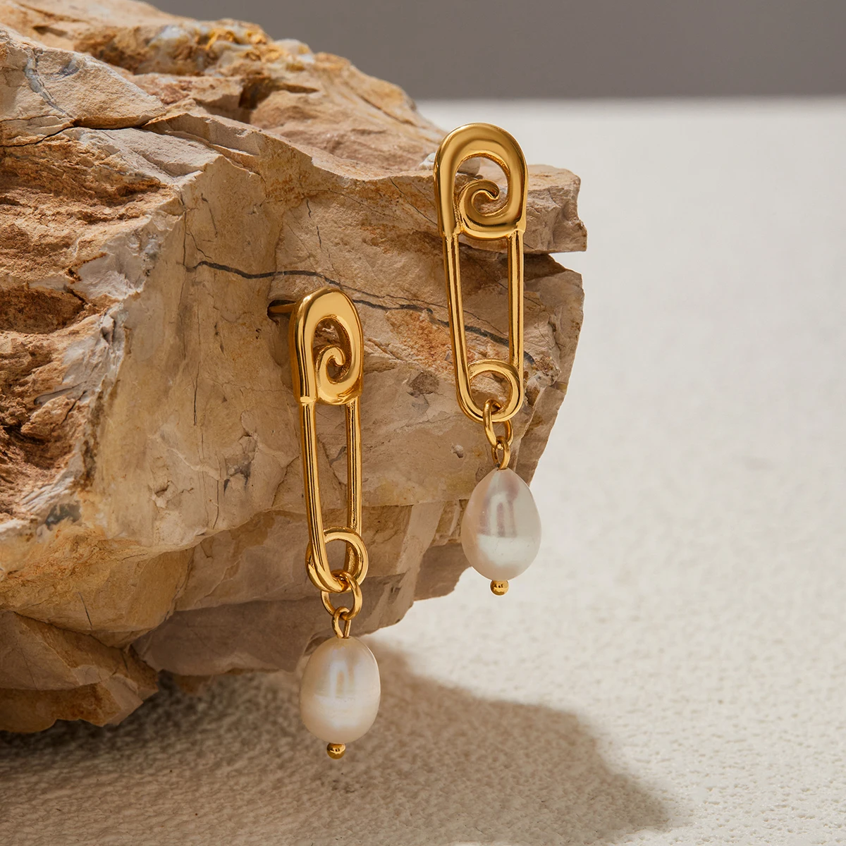 Stainless Steel Geometric Pearl Earrings