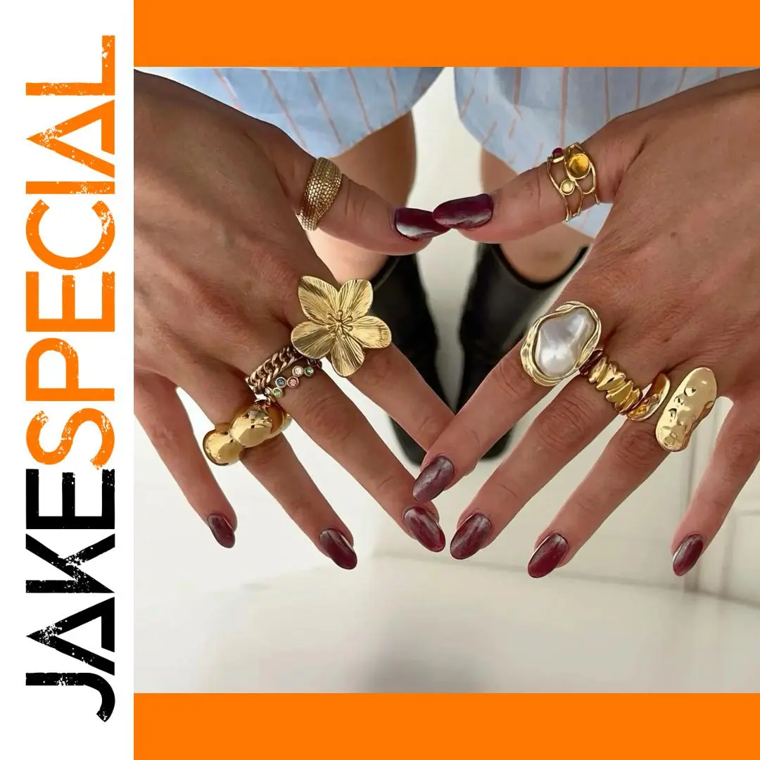 Step into sophistication with this fashionable imitation pearl stainless steel gold-colored ring, designed exclusively for women. Crafted with durable PVD gold over stainless steel, it maintains its luxurious shine for years. Weighing just 15 grams, this waterproof, nickel-free, lead-free, and cadmium-free piece offers a comfortable fit. Its geometric pattern, complemented by a stunning imitation pearl inlay, conveys a trendy and elegant aesthetic suitable for parties or special occasions. The versatile design makes it perfect to match various outfits, elevating your style effortlessly. Imagine yourself wearing this statement piece, enhancing your overall look while expressing your unique personality with a touch of luxury and modern finesse.