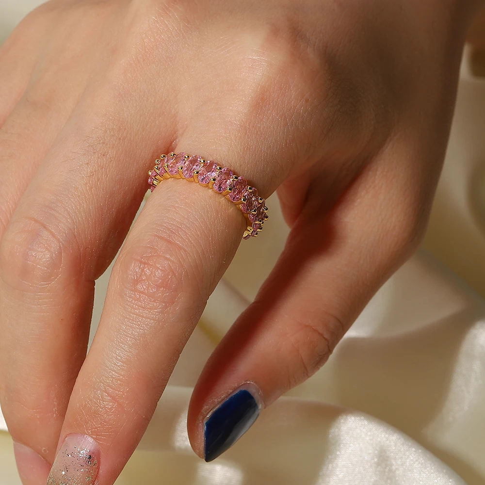 - Technical specifications: crafted from hypoallergenic stainless steel, with a polished finish, zirconia stones (vibrant shades in green and pink), resistant to water and tarnish, with adjustable fit options.