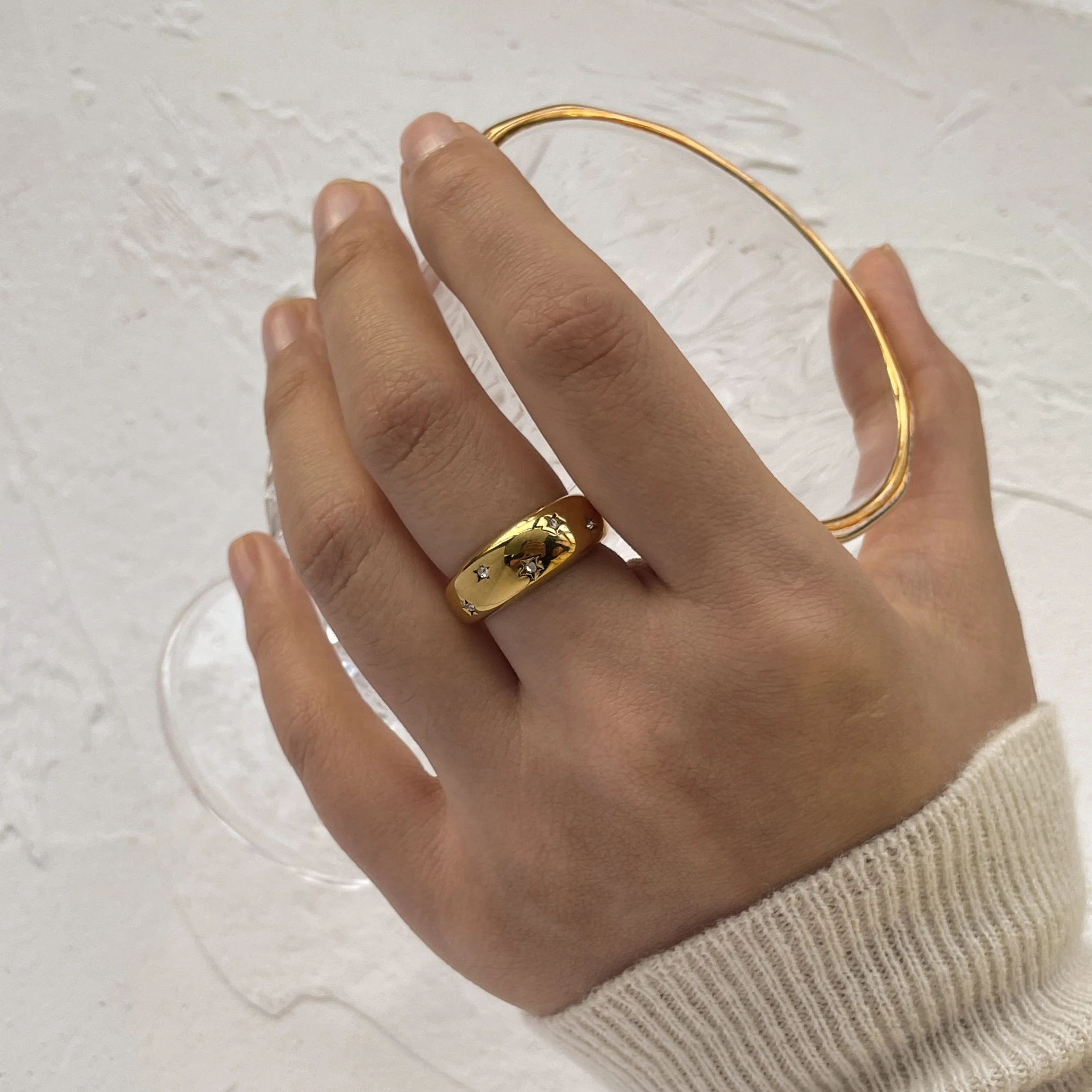 - Crafted from high-quality stainless steel with a polished silver base, complemented by a durable and luxurious gold finish for lasting beauty and style.
