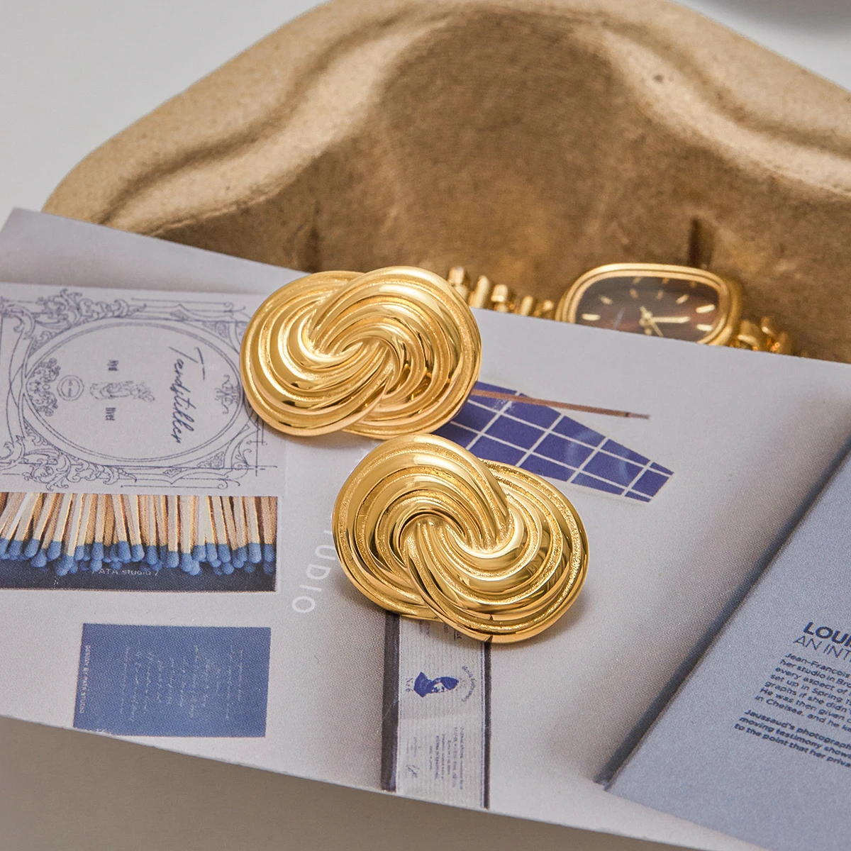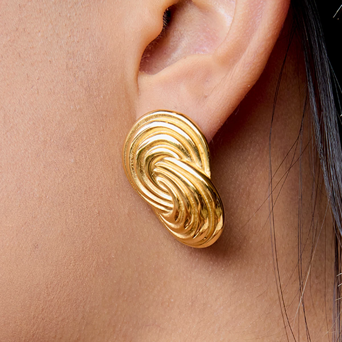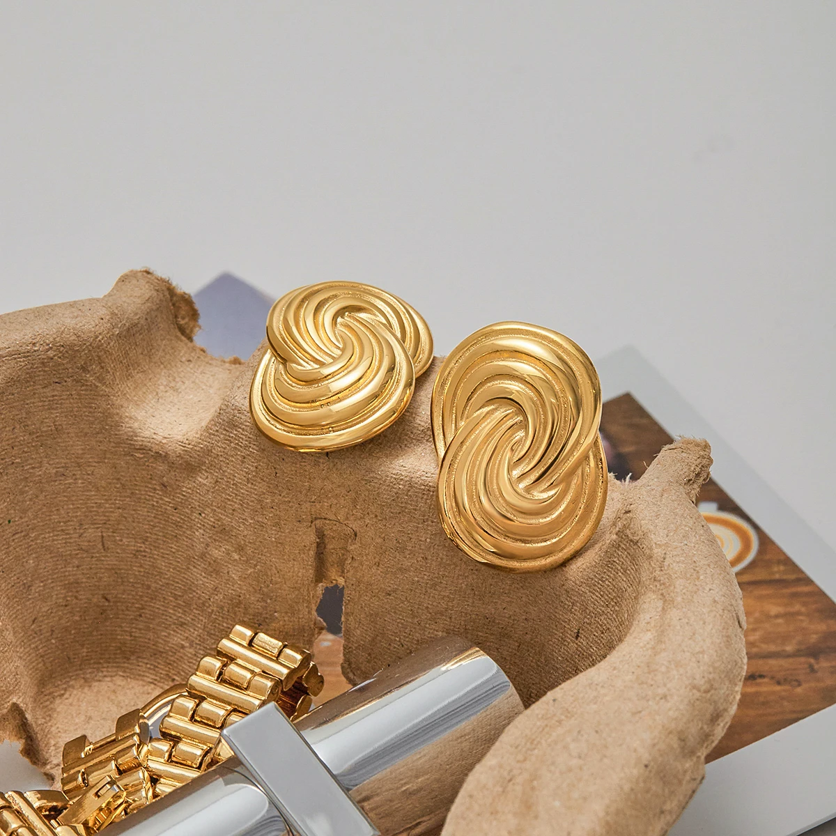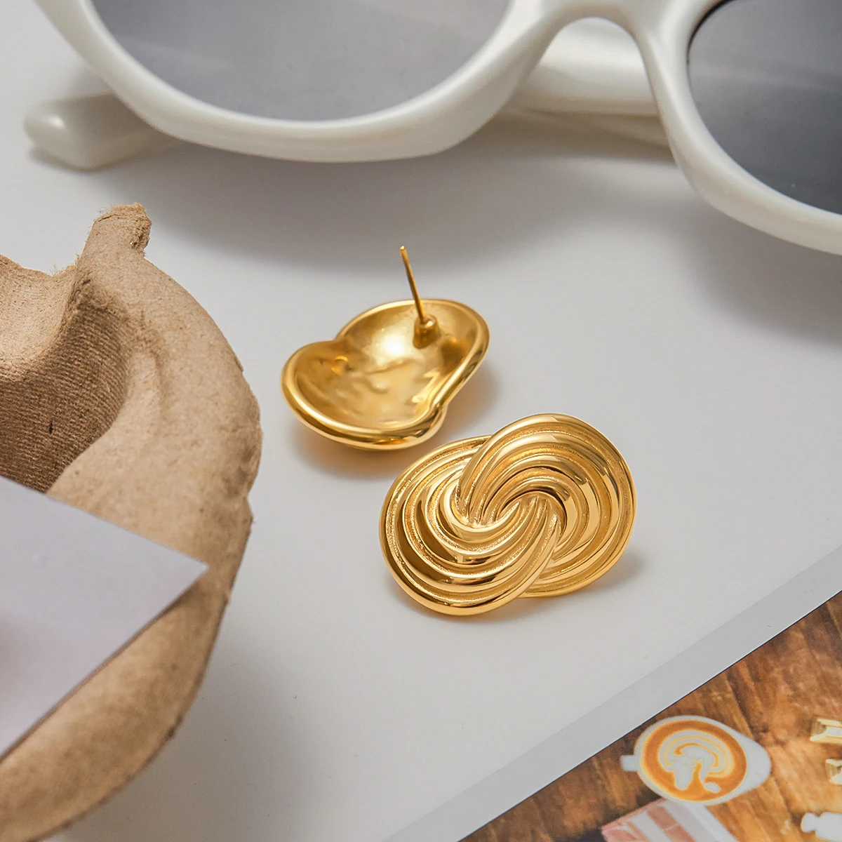 Elevate your style with these bold stainless steel stud earrings featuring a sleek platinum finish. Designed in an irregular spiral shape with textured, layered geometric details, they offer a modern, eye-catching aesthetic. Sized appropriately for women, these fashion accessories provide secure screw-back closures for comfortable wear. Crafted without high-concern chemicals, their shiny, high-polish surface reflects light beautifully, making them perfect for those who love sophisticated statement jewelry. Model number JDE0104012 ensures quality and style, blending contemporary design with durable stainless steel construction for a stunning, long-lasting accessory you’ll enjoy wearing daily.
