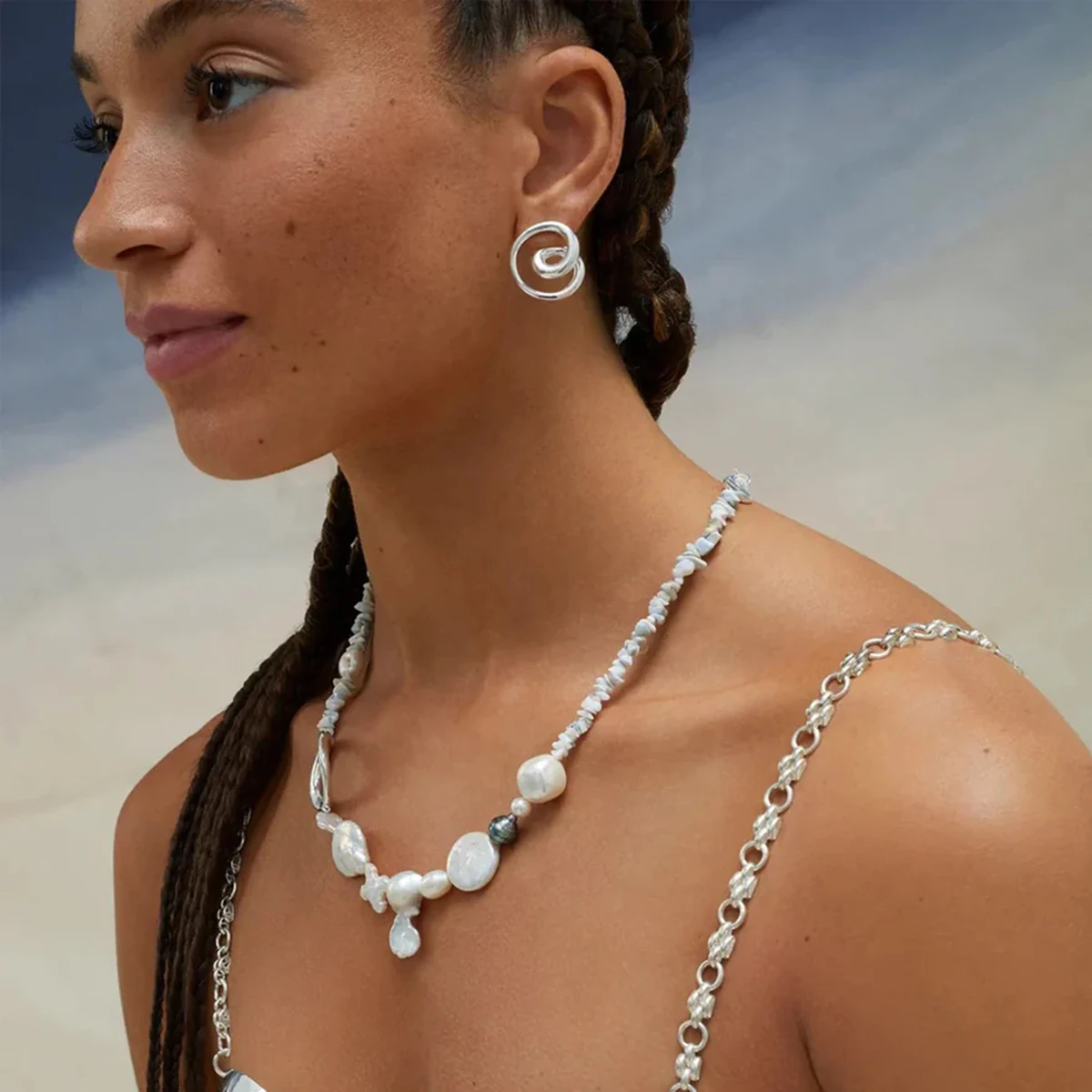 - Each earring measures approximately [specific dimensions not specified], combining a bold, lightweight form with artistic craftsmanship for a contemporary aesthetic.