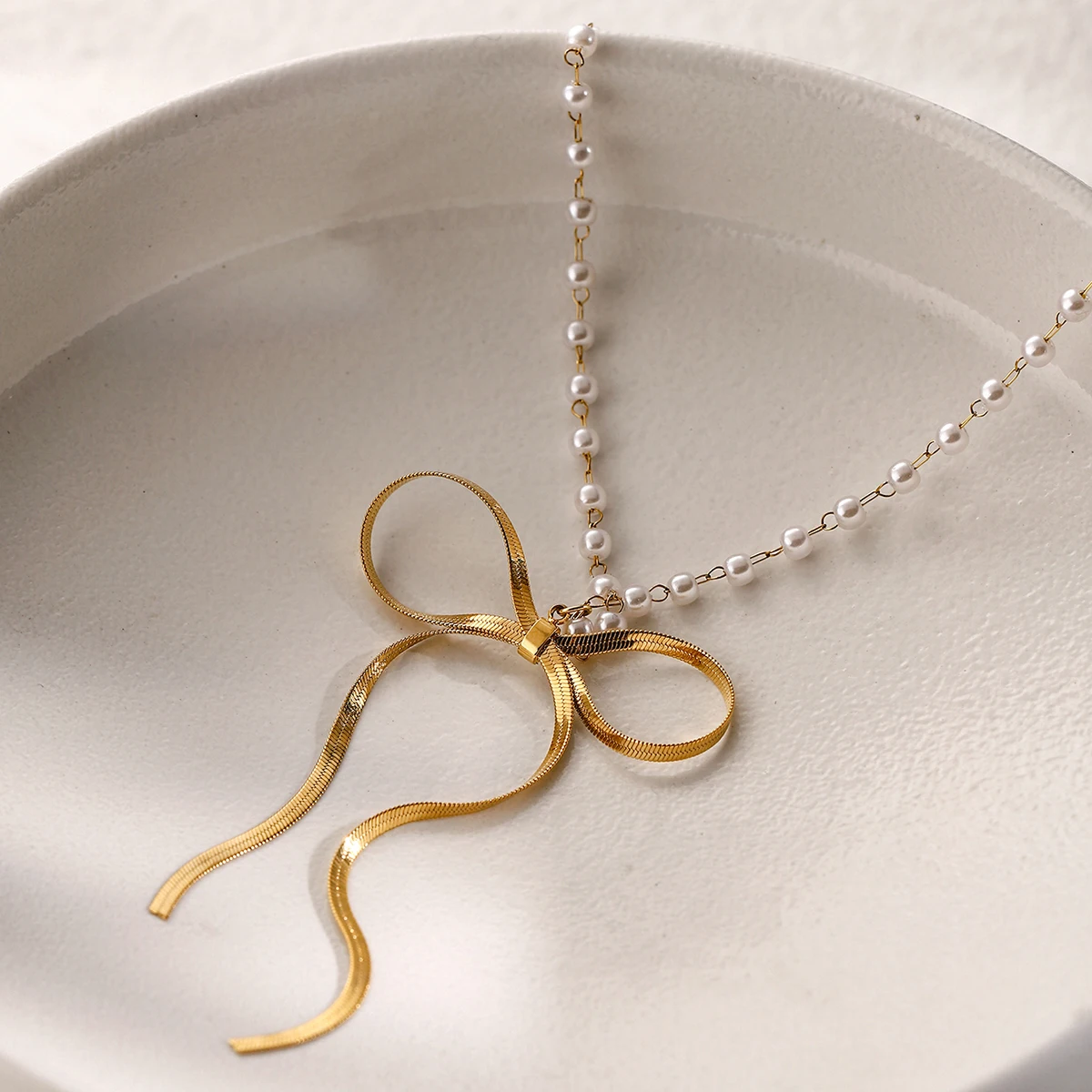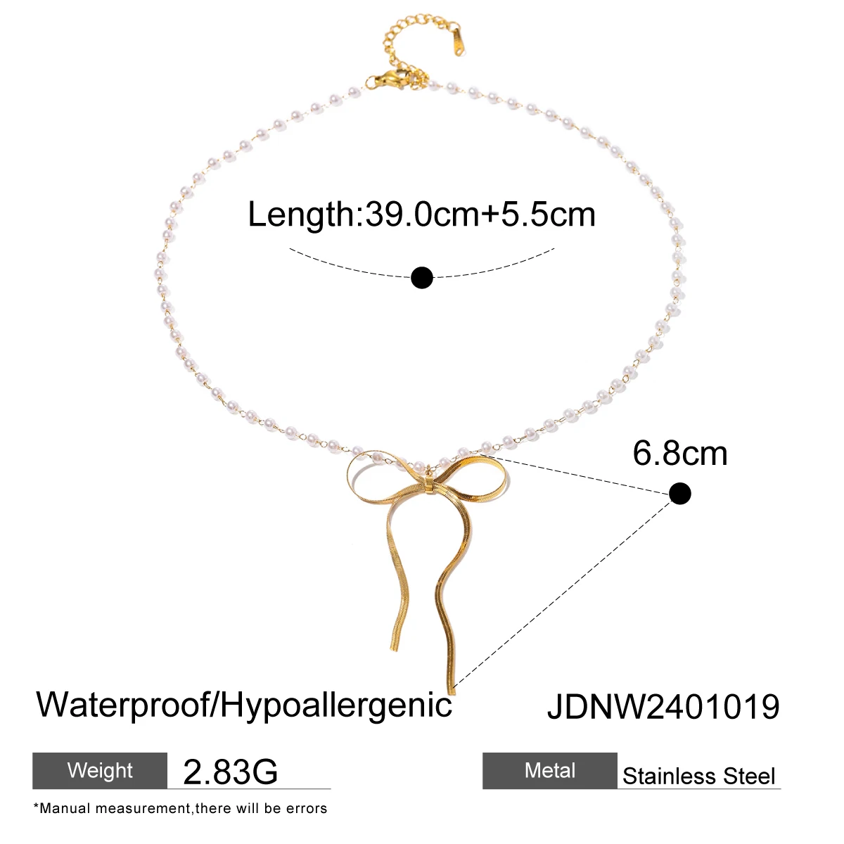 This beautiful stainless steel necklace with a bowknot pendant is the perfect addition to your jewelry wardrobe. Its trendy yet timeless design makes it suitable for everyday elegance or special occasions. With high-quality materials, it promises durability and safety, ensuring you can treasure it for years to come. Whether treating yourself or gifting someone special, this necklace offers a charming way to express your feminine style. Enjoy the sophisticated finish and delicate details that make it a standout piece. Order today and experience the allure of this exquisite accessory that combines modern fashion and practicality seamlessly.